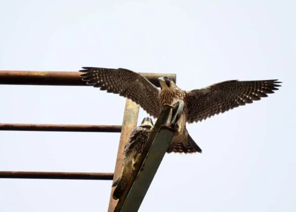 Los pequeños halcones, que nacieron posiblemente a finales del mes de abril, son de esta manera cada vez más independientes. Según el propio Alfonso Rodrigo explicó en declaraciones a este diario, durante las próximas semanas las aves son todavía dependientes de sus padres, Viento y Brisa, que serán los encargados de llevar el alimento al nido. Cuando hayan perfeccionado sus habilidades de vuelo y sepan cazar por sí mismos, algo que sucederá a lo largo del verano, serán sus propios padres los que les expulsen del nido al convertirse en competidores.