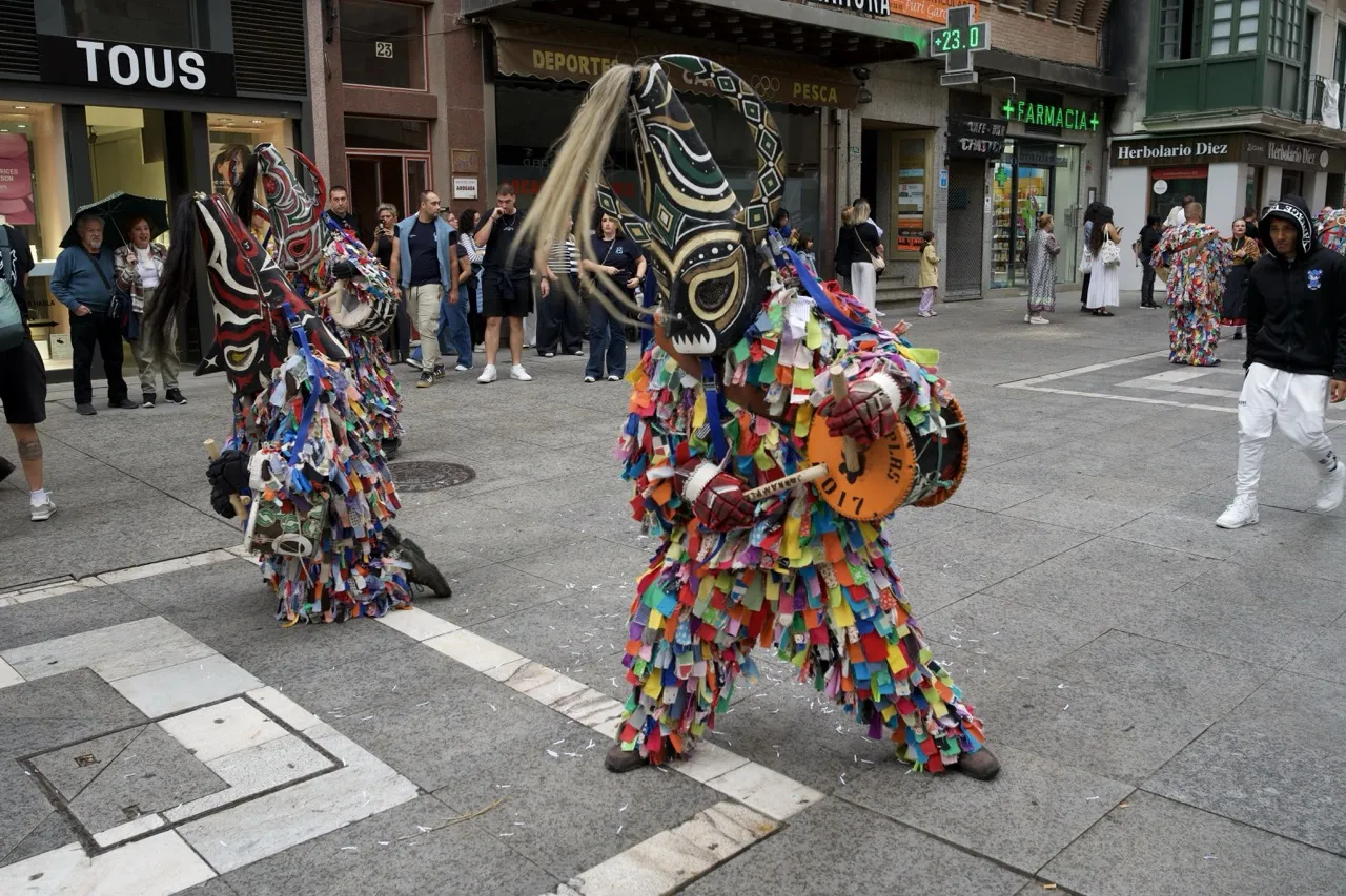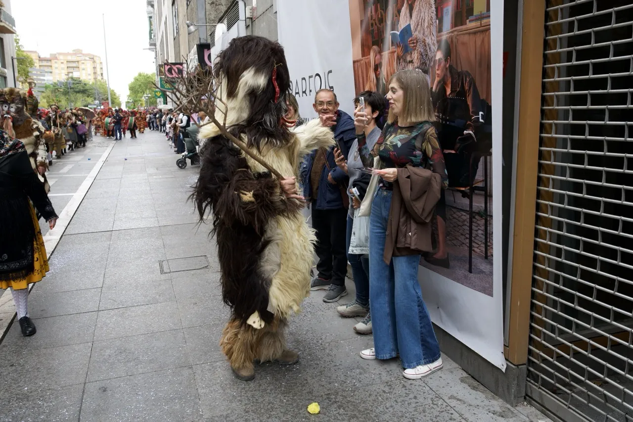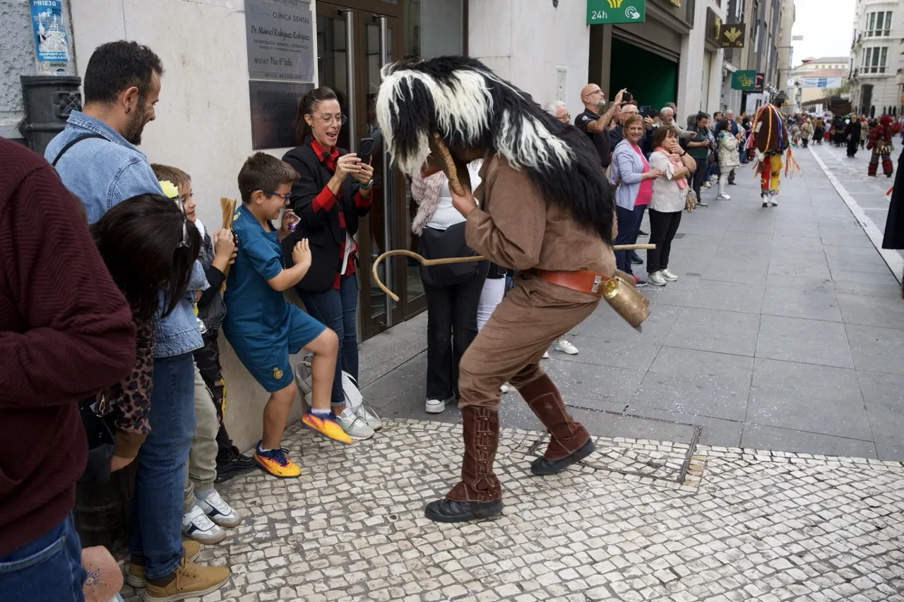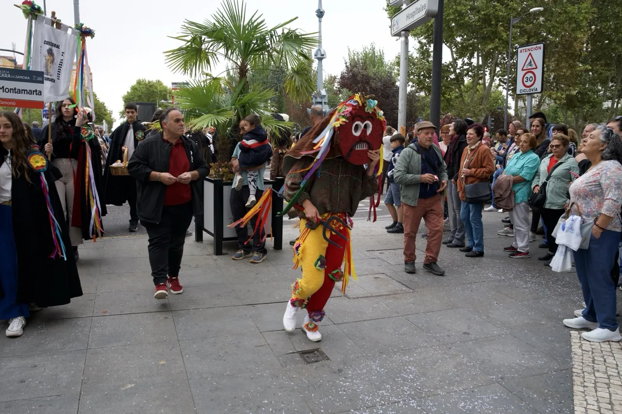 Viejas, más viejas y algunas modernas, redescubiertas. Locales y forasteras. Coloridas o más sobrias. Con y sin baile, con y sin instrumentos, con y sin carreras. Máscaras, de todas clases, representantes de mascaradas rurales a este y al otro lado de La Raya han protagonizado esta tarde la edición número 14 de un evento que es ya un clásico en estos primeros días del otoño. Los pueblos han vuelto a traer a Zamora lo que los mayores supieron guardar y las nuevas generaciones se están afanando por respetar. Y lo han lucido como es costumbre por el centro de la ciudad. 500 personas y 37 desfiles dan para mucho.