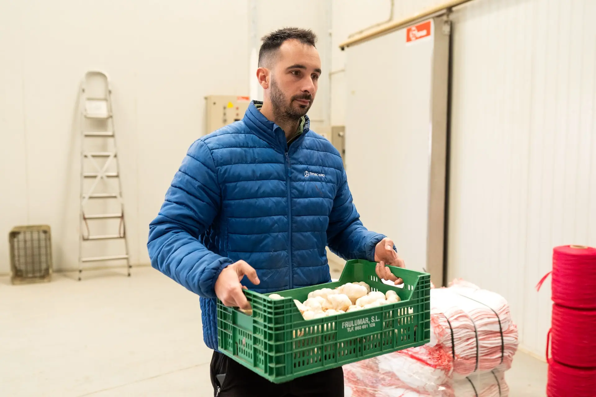 Jaime, con una caja llena de ajos. Foto Emilio Fraile.