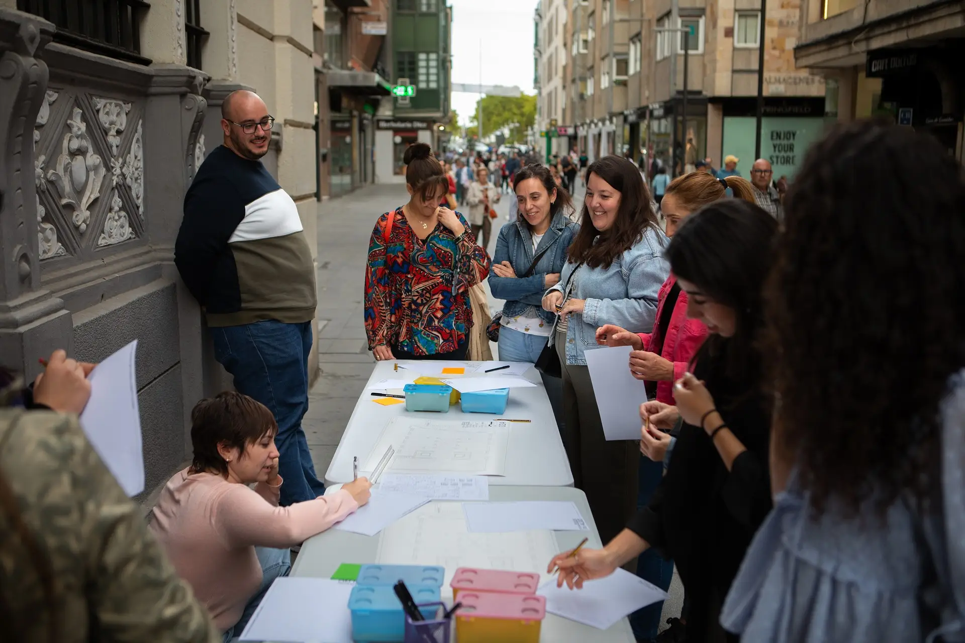 Pero lo primero es una tormenta de ideas: «Que no os dé miedo hablar», reclama Barrio. Un hombre que pasaba por allí sugiere que aquí podría ir «un Zara espectacular». O un espacio comercial en general. Ya los participantes de verdad sugieren una sala de exposiciones, una biblioteca, una sala de talleres o un espacio de coworking. También un vivero de empresas, una zona de música en directo, viviendas o una librería.