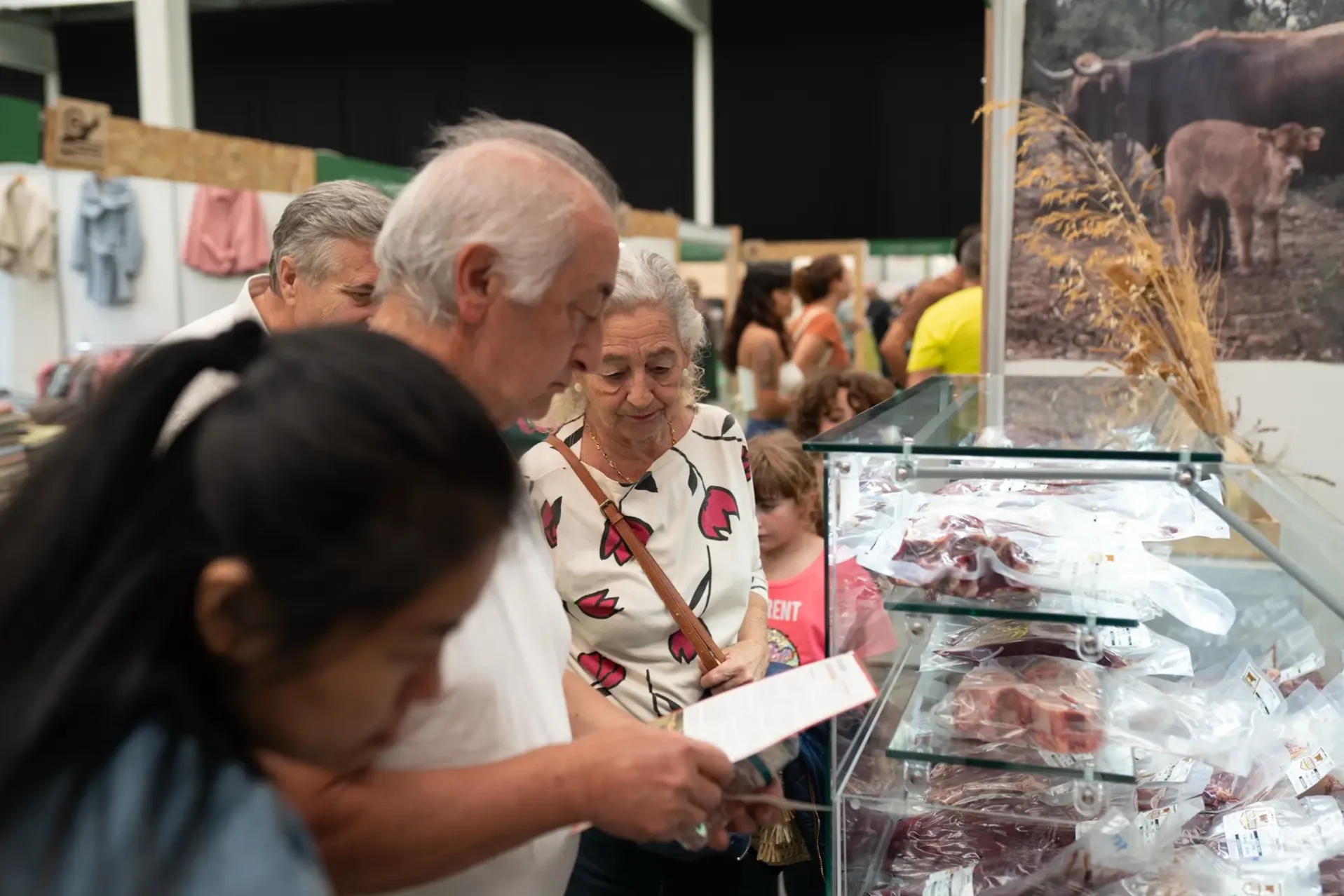 Ferias como Ecocultura, con tantos puestos cercanos entre sí, se acaban convirtiendo en un festival de estímulos. Cuesta diferenciarse para llamar la atención. Pero alrededor del stand de Alejandro López va apareciendo la gente. Incluso, aunque sea más bien una hora valle para el evento que acoge estos días Ifeza. Si uno asoma la cabeza por el puesto, ve en primer plano la pinta de la carne que trae este productor. Y, ya un poco más cerca, podrá leer que aquí se compra chorizo y salchichón de ternera. Suficiente, al menos, para preguntar.