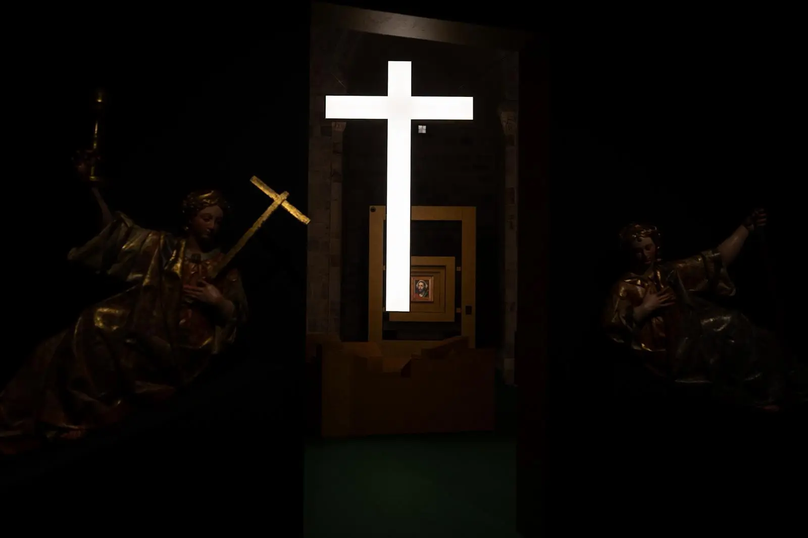 La exposición incluye, con un papel destacado, varias obras de la Catedral de Zamora, pero sobre todas destaca una, el Cristo de las Injurias, que ha sido sacado de su capilla para tener un papel especial en el recorrido, lo que permite presenciarlo de cerca y desde muy abajo, pues la cruz está prácticamente incrustada en el suelo. No forma parte finalmente de la muestra la imagen de la Virgen de la Esperanza aunque sí su advocación. «La esperanza, virtud teologal por excelencia, germina especialmente donde la vida toca fondo, donde la cruz nos traspasa para recordarnos que ni el sufrimiento ni el dolor tienen valor definitivo», dicen los comisarios de la muestra, Juan Carlos López y Sergio Pérez.