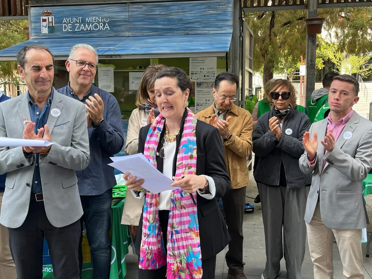 «Tenía un bultito que me molestaba cuando me ponía el sujetador y me empezó a asustar, se lo dije a mi médica, me dijo que estaba durito, que no se movía, me puso atención preferente y bueno, en diciembre me diagnosticaron». Habla Azucena Ledesma, de 47 años, «joven, joven», porque se lo considera y porque lo es. Encargada ayer de poner voz a las mujeres zamoranas afectadas por cáncer de mama. Azucena, como tantas otras, se dio cuenta por sí misma de que algo no iba bien. No tuvo tiempo ni de acudir a los cribados, asegura ahora, unos pocos meses después de recibir el diagnóstico y en pleno tratamiento médico. «Te haces muchas preguntas, te sientes culpable a veces, te dices que no te tocaba a ti». Pero toca.