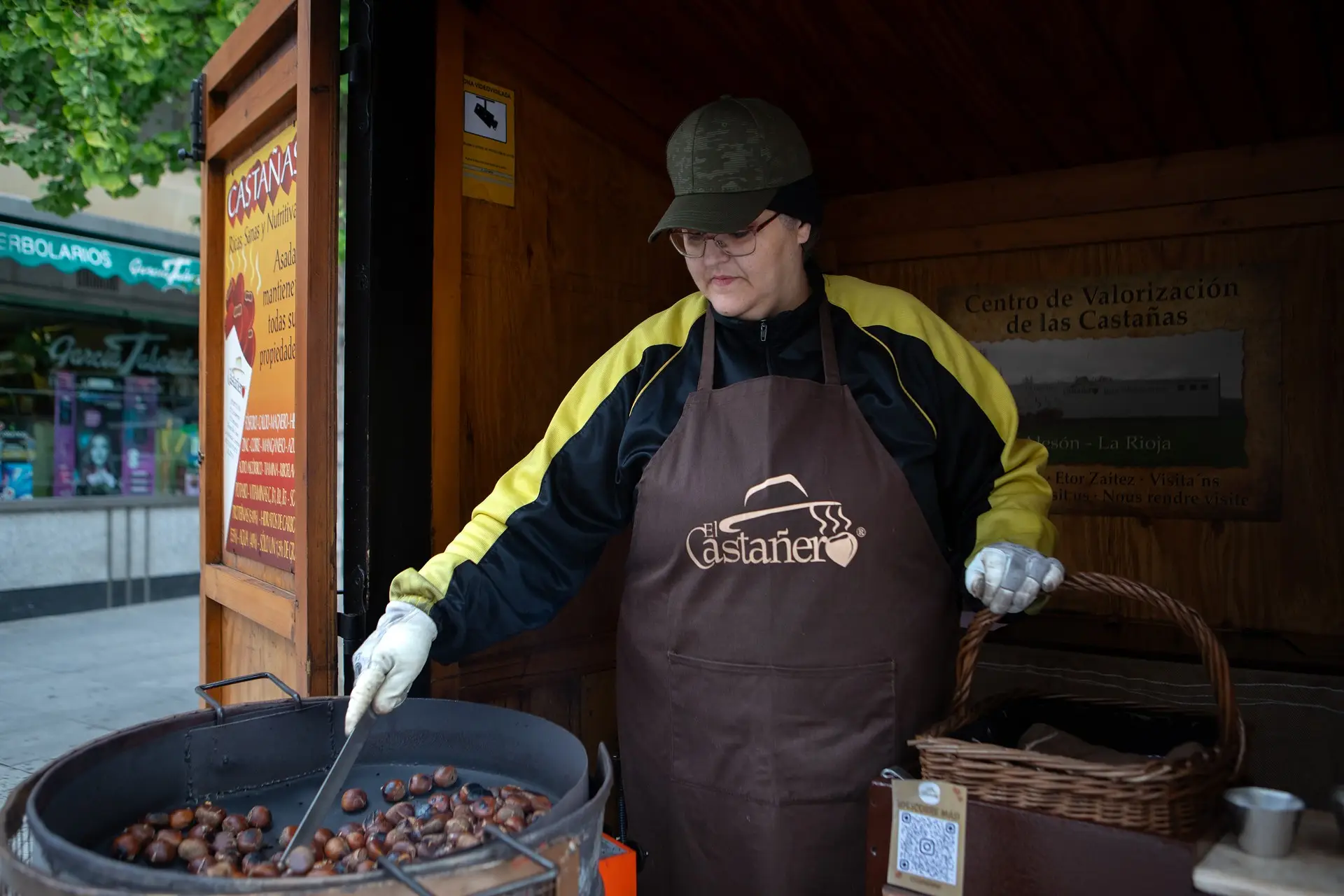 En esas jornadas gélidas, ella padece. Ahora, el calor de las castañas sobra para estar a gusto. Cuando llegan las temperaturas bajo cero, no: «Lo paso mal», admite la trabajadora, que no tiene más queja. Y menos ahora, cuando todo empieza y se reencuentra con «el niño de ocho años que viene todos los días» o la persona de 80 que tampoco falla. La conversación acaba precisamente porque hay otro cliente a la cola atraído por el olor a otoño que se quedará unos meses en Santa Clara.