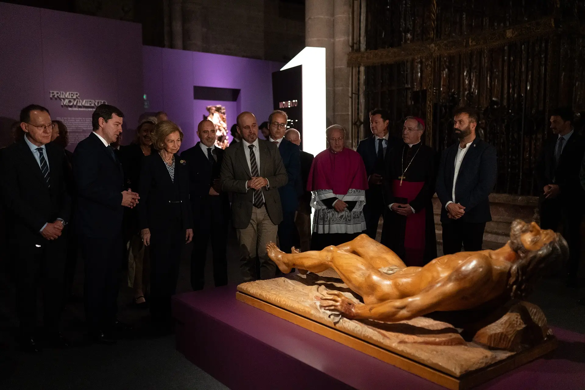 A las puertas del gran templo, se repite la escena inicial. Aplausos, saludos y hacia dentro. Los medios se van ubicando en tres puntos concretos mientras la visita se desarrolla por el interior de la muestra. Apenas se pueden ver fragmentos. Bastante para comprobar que Mañueco acompaña a Pérez en la explicación. También el teniente de alcalde de Zamora, David Gago, interviene de vez en cuando. Ambos le cuentan a la emérita detalles de una obra que le llama la atención: un Cristo volviendo a la vida del salmantino Venancio Blanco.