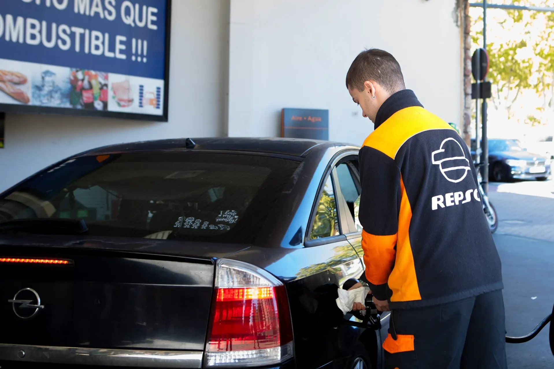 Álvaro Moreno echa gasolina a un coche. Foto Paloma V. Escarpa