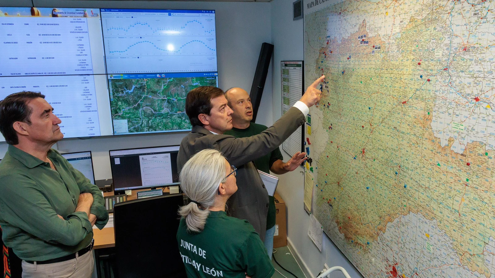 Mañueco y Quiñones visitan el Cecopi, durante los incendios de agosto. JCYL