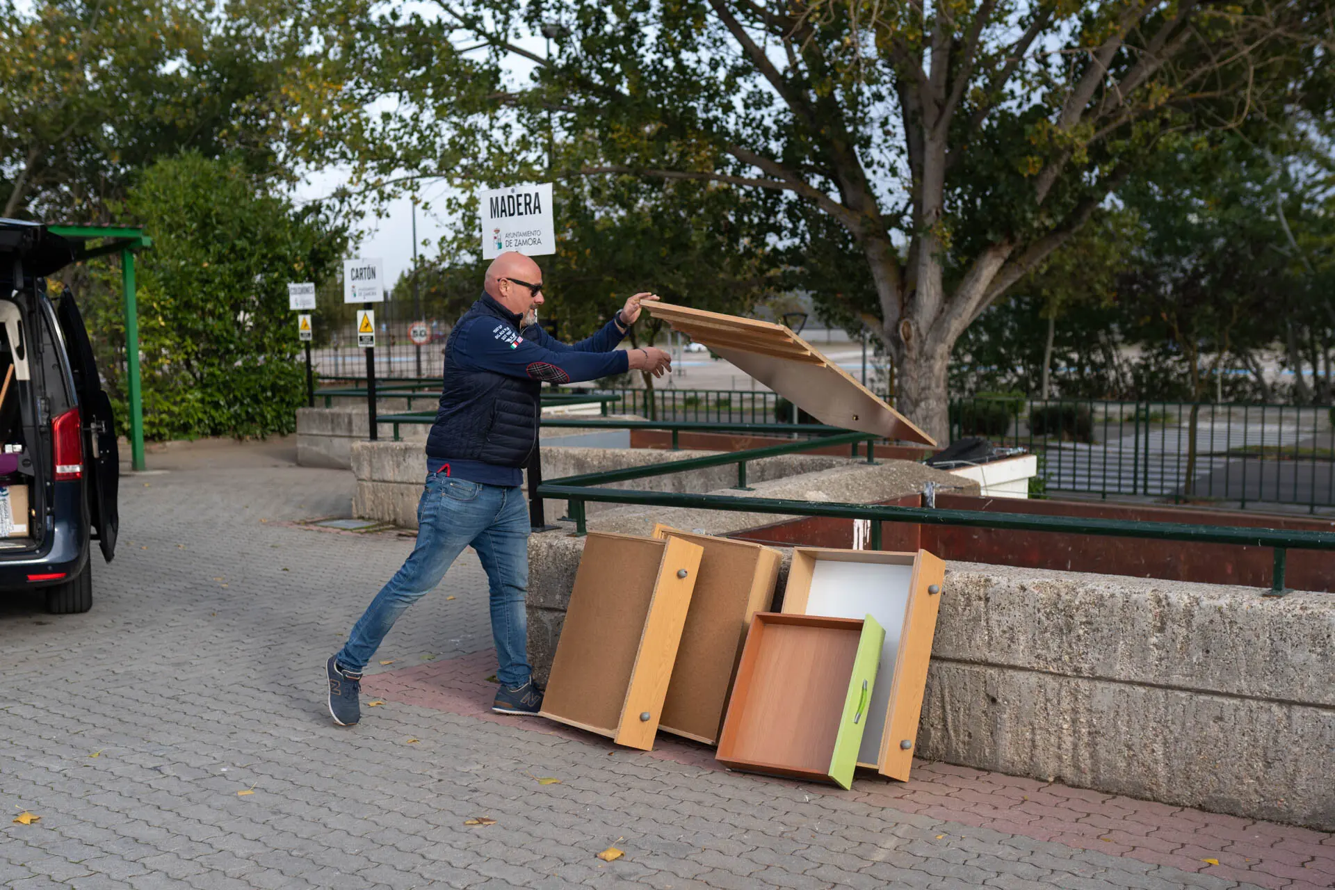 Un usuario del Punto Limpio deja algunas piezas de madera. Foto Emilio Fraile.