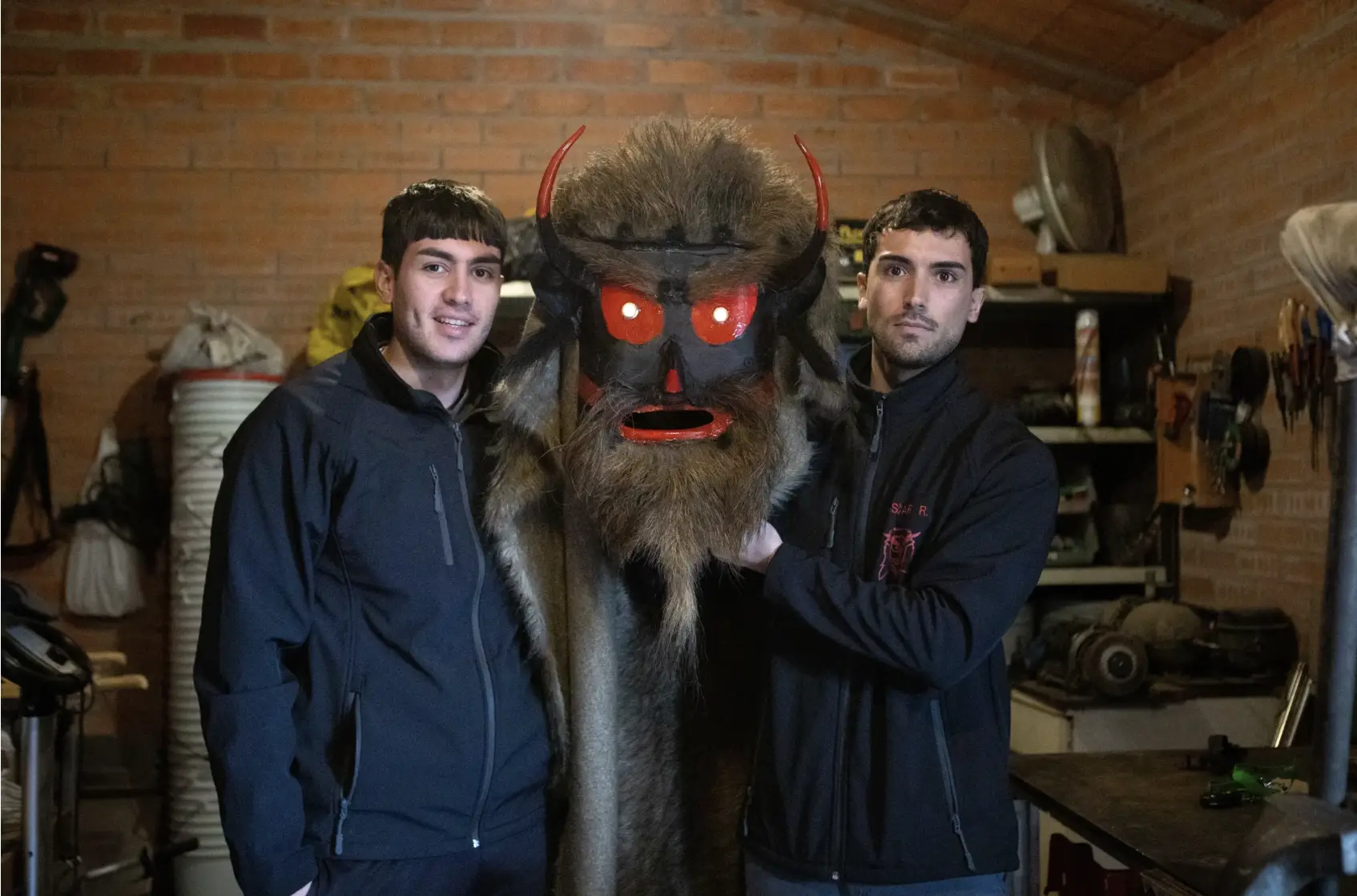 Para empujar el día a día y las ideas grandes, la asociación cuenta con unos 80 socios. No es poco para un pueblo que no llega a esa cifra de vecinos en invierno. Salvo el 1 de enero, claro. Ese día es un paréntesis evidente. Ahí habrá vecinos, curiosos, etnógrafos, fotógrafos… «Viene mucha gente. Lo único que pedimos es que no se metan en la mascarada. Yo entiendo que quieren tener las tomas que salen espectaculares con la niebla, pero tienen que entender que, por cómo son los trajes, tenemos una visibilidad muy reducida», advierte Óscar.
