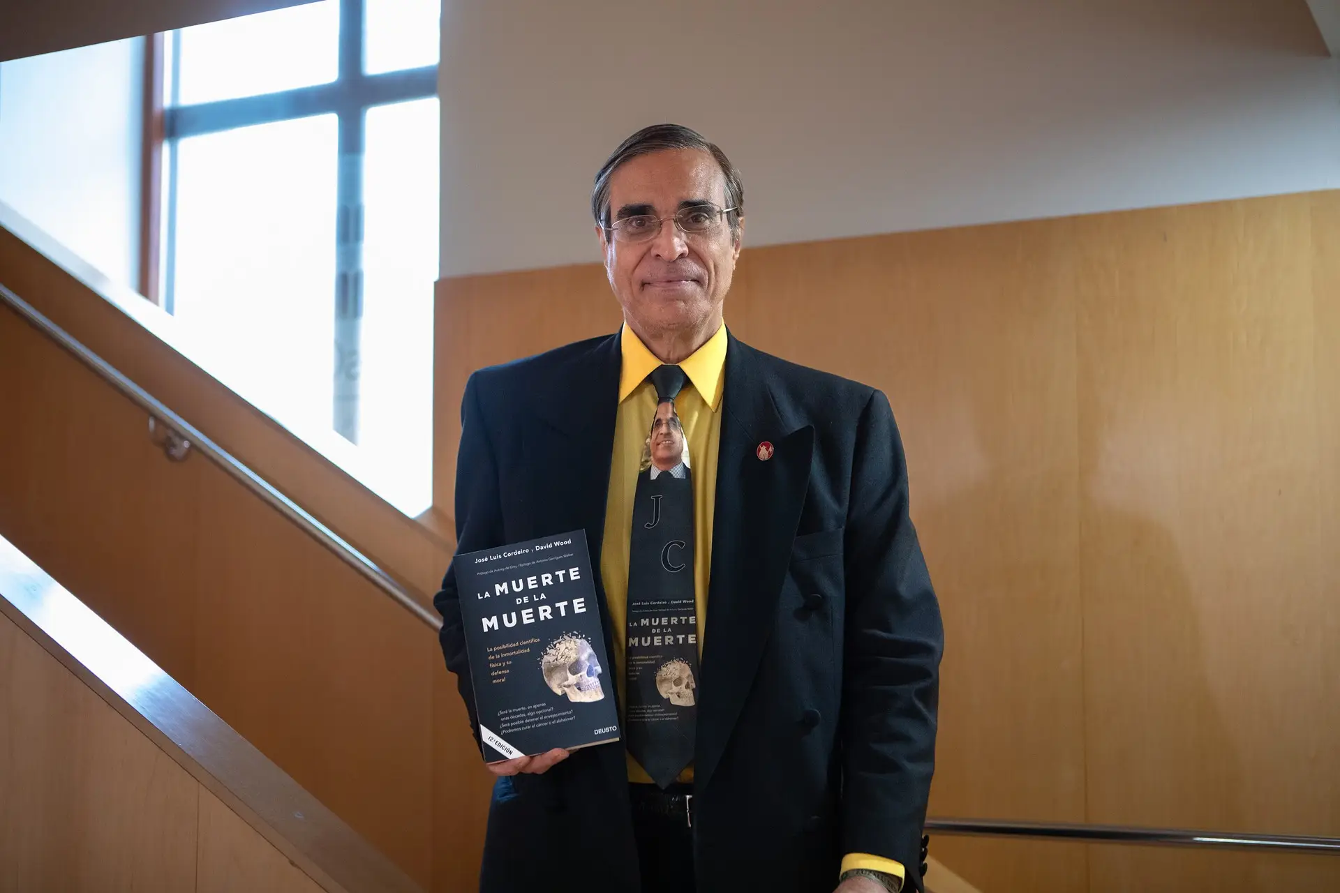 José Luis Cordeiro (Caracas, 1962) protagonizó este sábado, en la clausura del séptimo congreso silver economy de Zamora, la que fue probablemente la intervención más particular desde que se organiza este evento. El ingeniero y autor del libro La muerte de la muerte se sentó frente al público con una corbata estampada con su cara y la portada de su obra; sacó camisetas, una bandera de España y objetos tecnológicos obsoletos; y proclamó lo siguiente: «La muerte es un problema técnico y vamos a curarla». Concretamente, en 2045.