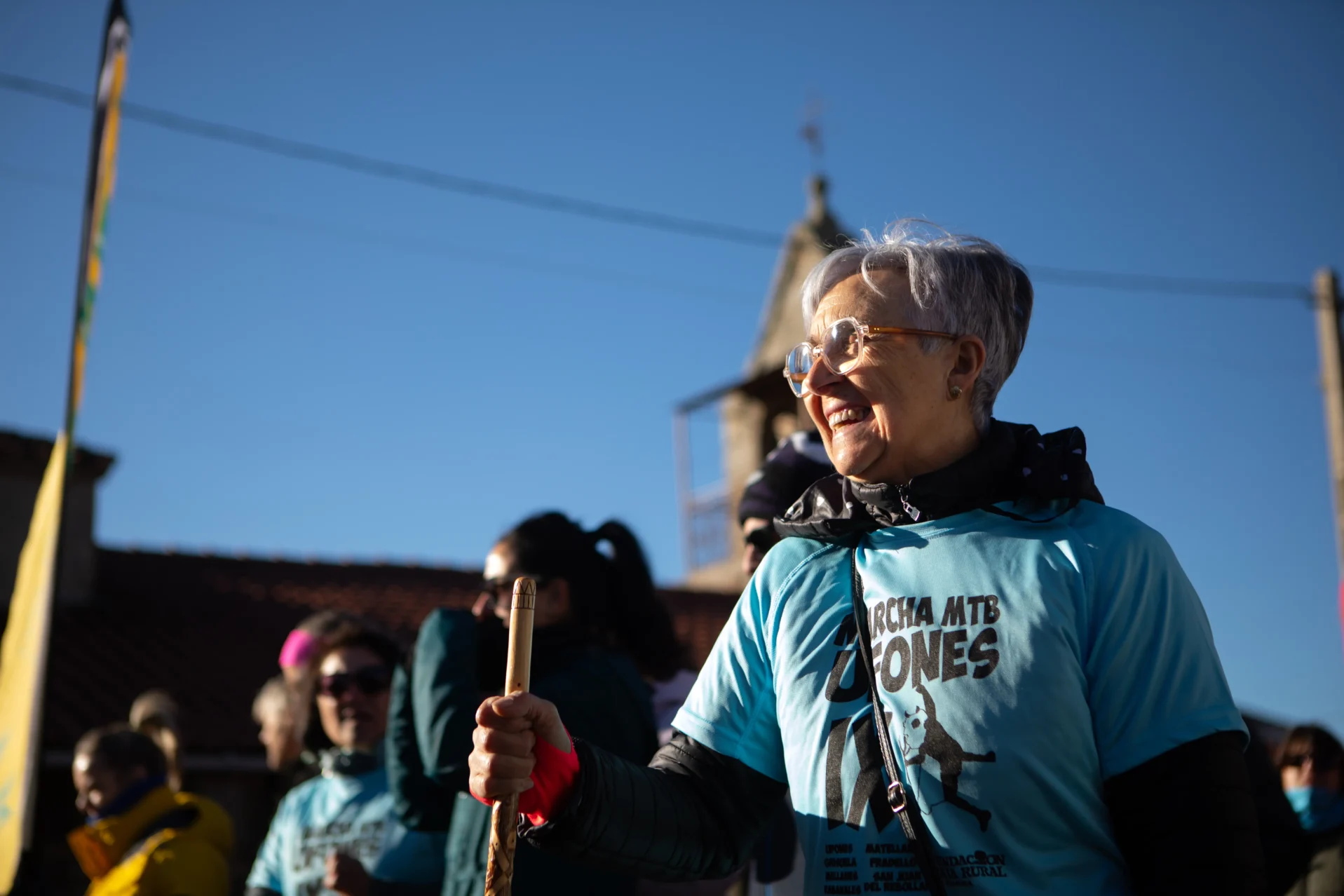 Los ciclistas y los andarines inician la ruta mientras siguen las indicaciones de personas con petos amarillos en cuya parte trasera se refleja el cargo para la jornada. Todos tienen alguna tarea, y muchos son también del pueblo o vinculados. Cada uno aporta en lo que puede. Cuando los participantes han salido ya a disfrutar del campo, del barro, del paisaje y del último sol de noviembre, la escena en Ufones se traslada al centro social La Casona. Allí, hay algún ejemplo más de participación vecinal.