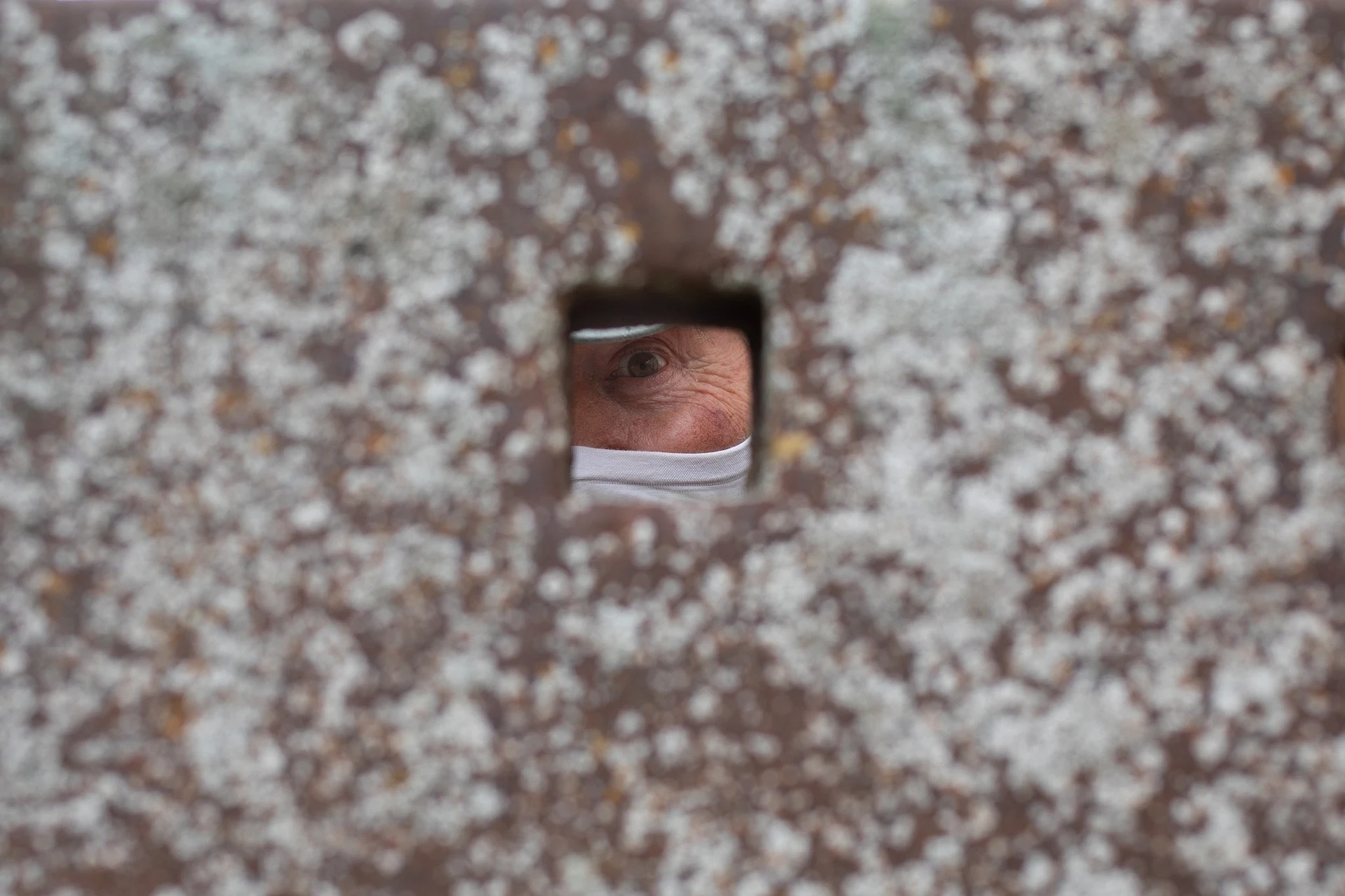 José Luis Coomonte, detrás de una de sus obras. Foto Emilio Fraile