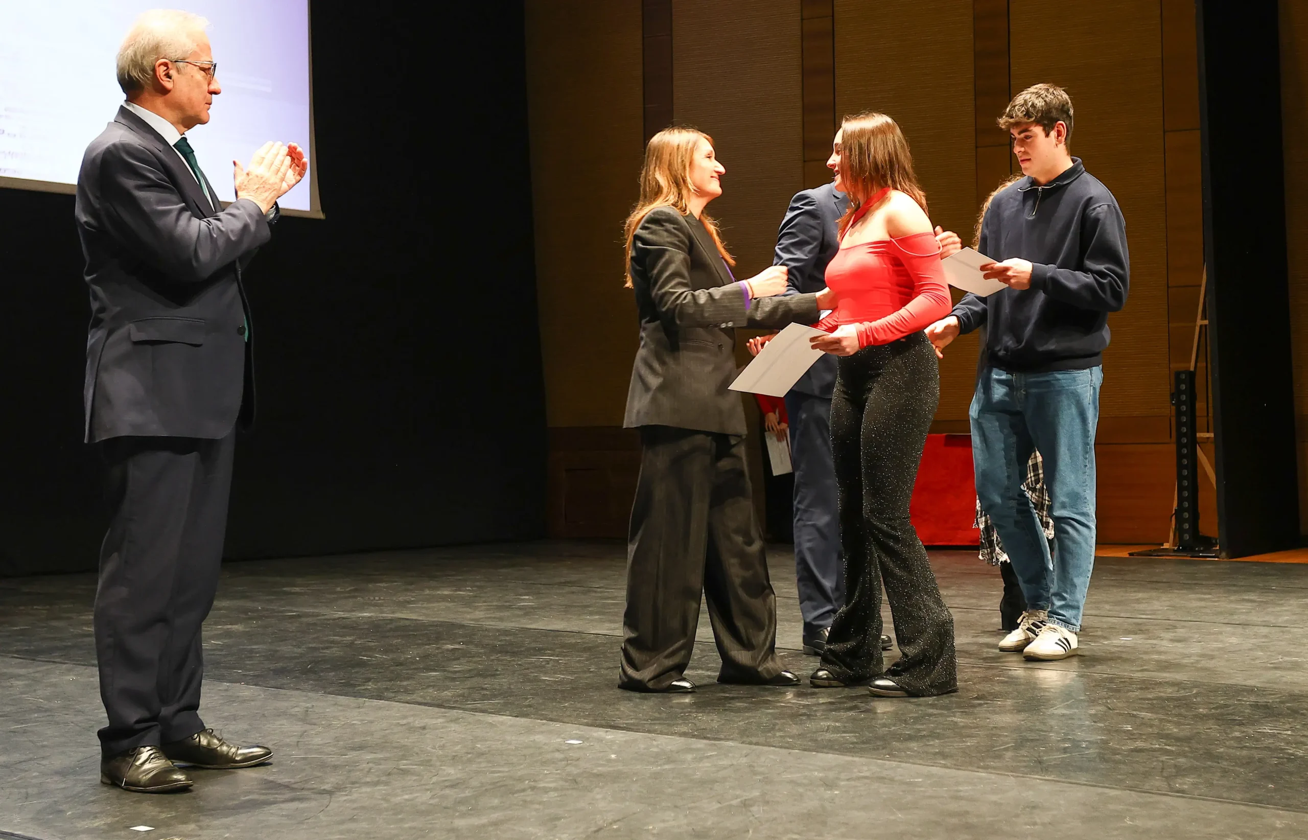 Durante su intervenció en el acto la titular de Educación, Rocío Lucas, ha querido destacar que el departamento que dirige cierra un año de logros y abre otro de lleno de retos. «Hoy celebramos ese talento. Celebramos el compromiso de los docentes que creen, firmemente, que cada clase cuenta. Celebramos el tesón de los estudiantes, que se levantan cada día con la convicción de que el esfuerzo no es una rémora, sino un trampolín. Celebramos el apoyo de las familias, que sostienen silenciosamente el camino formativo de sus hijos. Y celebramos, en definitiva, una idea que resume lo mejor de esta tierra: la certeza de que la excelencia no es un privilegio, sino una actitud», ha enumerado la consejera.