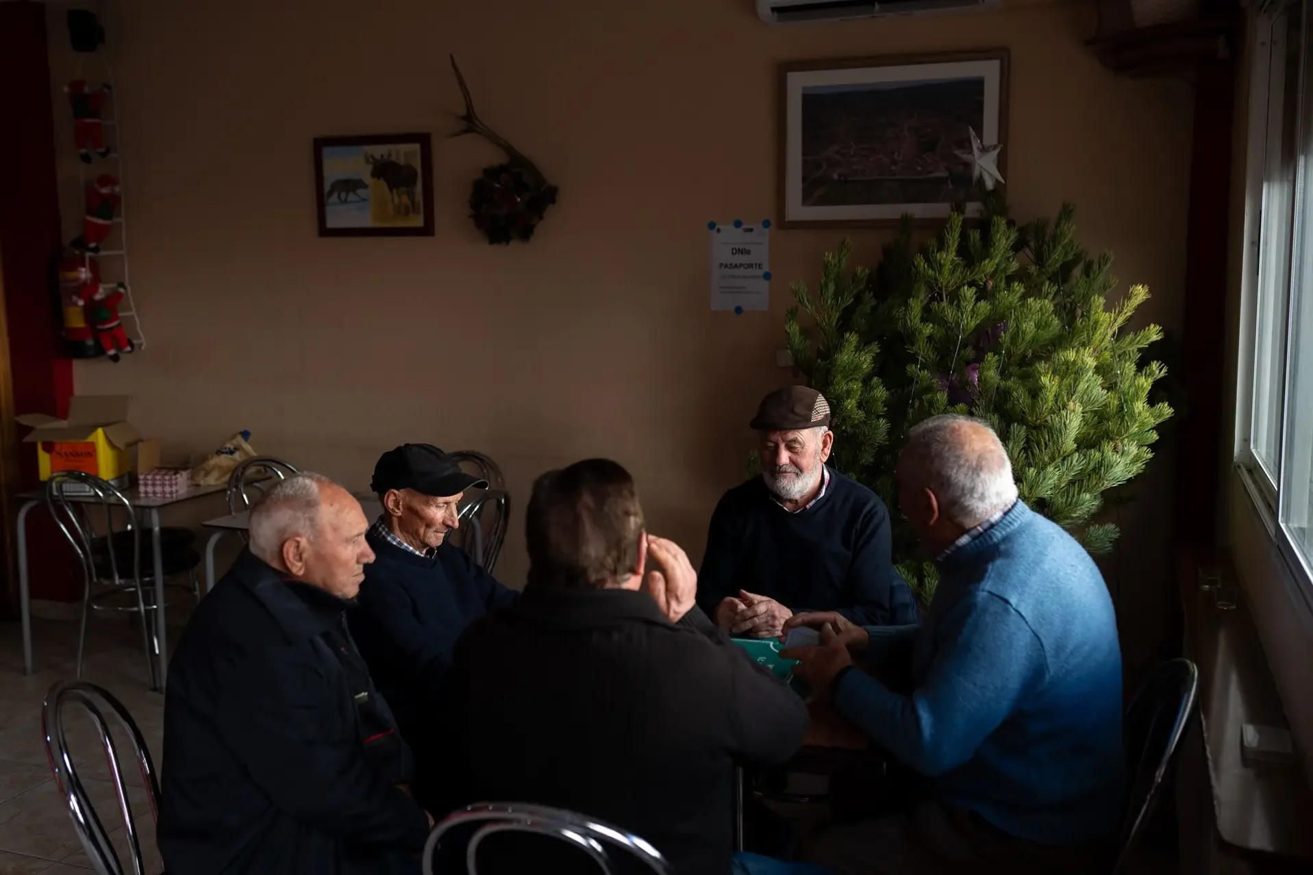 La terraza del bar Mi&Lú está recogida en la tarde del antepenúltimo sábado del año. Las sillas se amontonan a la sombra, donde no hay quien pare del frío a pesar de que el día refulge en Aliste. Fuera, por las carreteras y los caminos de los pueblos de la contorna, decenas de personas pasean al abrigo del sol de primera hora de la tarde mientras, en el interior del local, cuatro vecinos echan la partida al pie de la ventana con un espectador a su vera.