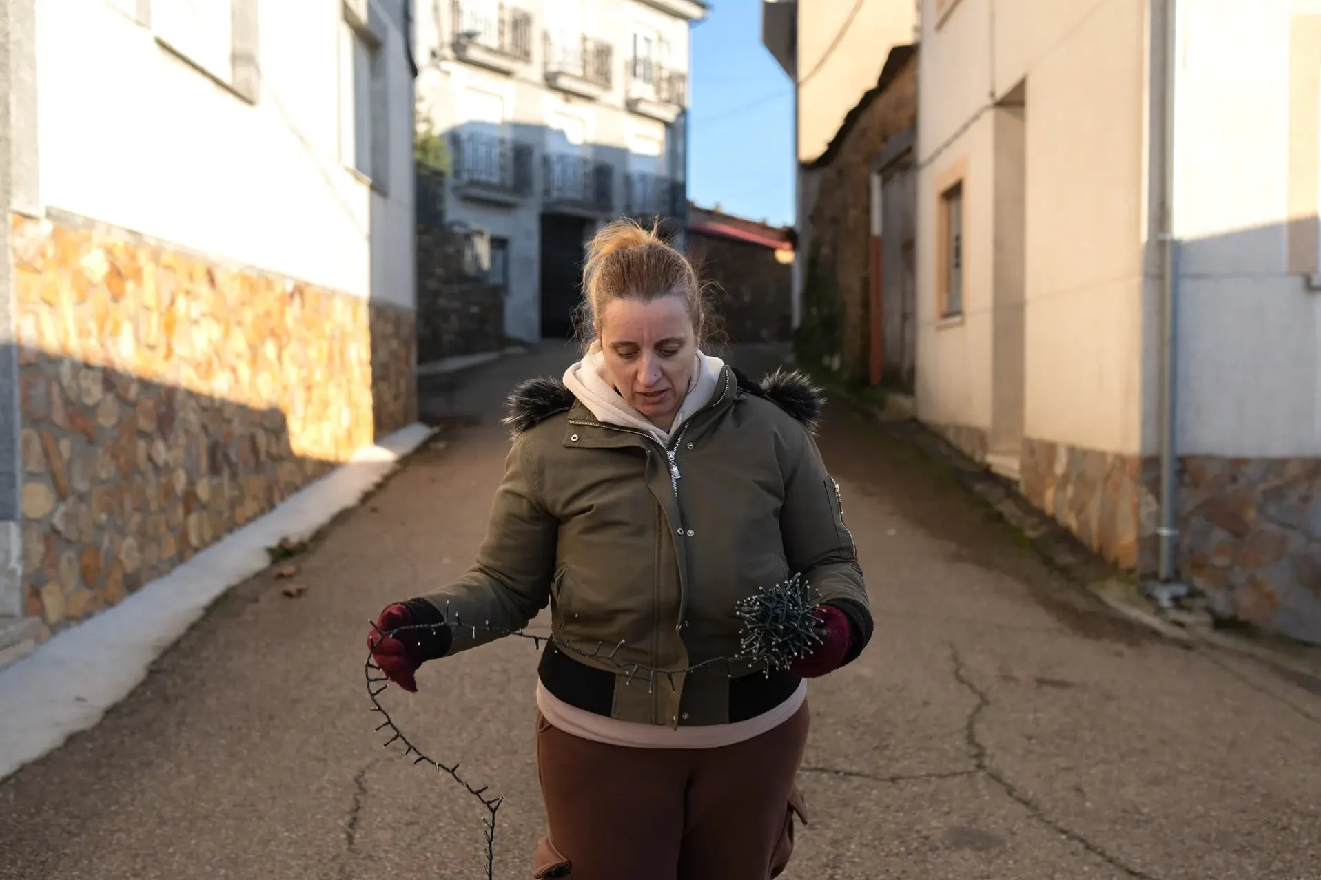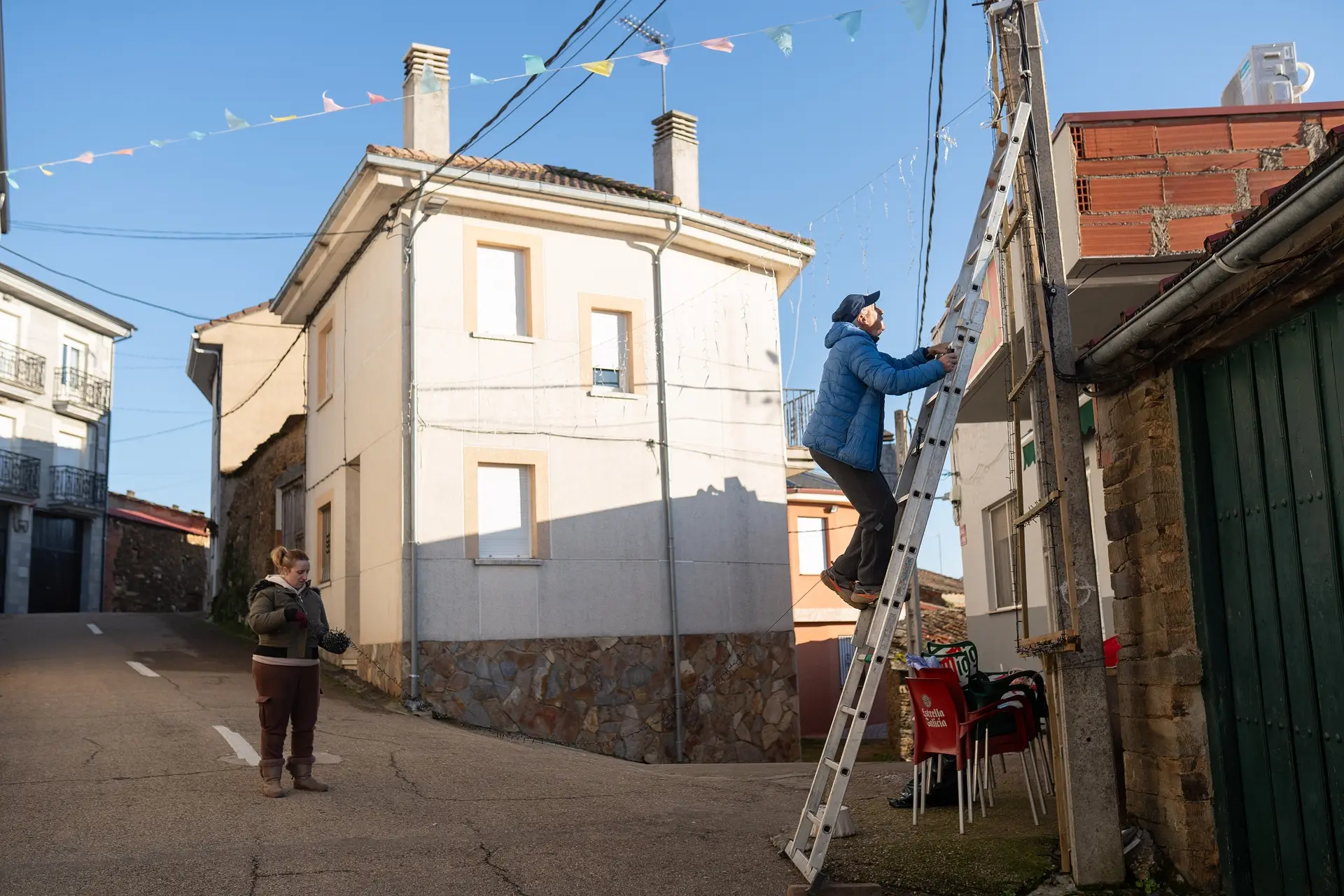 Pero la atención se centra allí, en la zona de la terraza recogida del bar de La Torre de Aliste. En ese lugar, un hombre y una mujer andan a la faena. Ella es la hostelera; él, el alcalde pedáneo, Laurentino Peláez. Y la jera que ambos comparten en esta tarde casi de invierno es la clásica en esta época: colocar las luces de Navidad. Pero no en los domicilios o en el negocio, que también. Se trata de la iluminación para la vía pública. Aquí no hay técnicos ni partidas municipales que valgan. Los vecinos lo hacen todo a pulso.