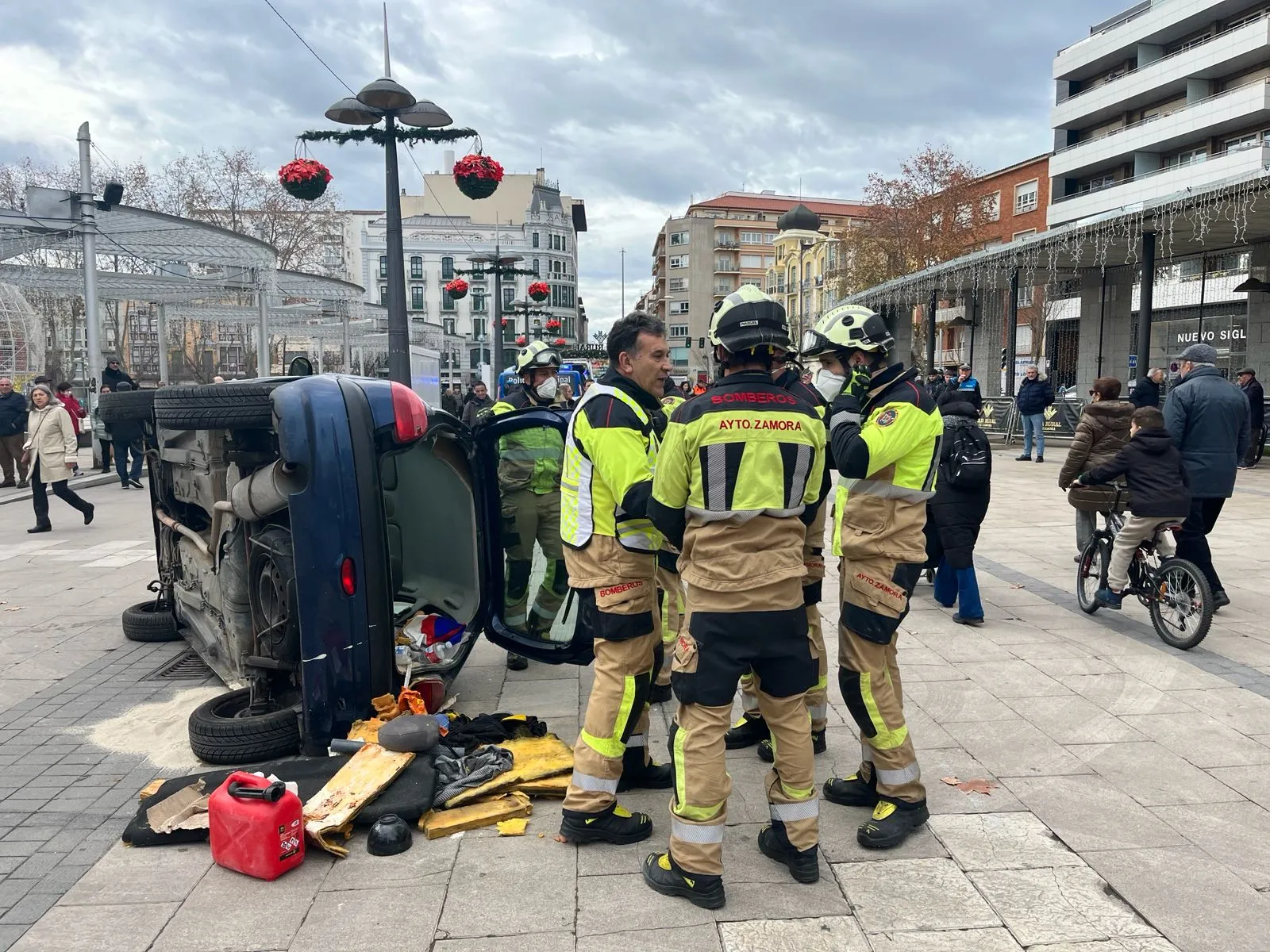 Un conductor ileso que había bebido y consumido sustancias, una persona herida grave que ha sido traslada al hospital y un fallecido. Este ha sido el resultado del accidente de tráfico, simulado, de esta mañana en la plaza de La Marina de Zamora, una recreación en la que han participado decenas de efectivos de Cuerpos y Fuerzas de Seguridad del Estado, voluntarios, taxistas e incluso trabajadores de una empresa de servicios funerarios para mostrar a la sociedad, de la forma más gráfica posible, lo que puede suceder si se coge el coche después de haber bebido. Un comportamiento que, afortunadamente, cada vez realizan menos personas pero que sigue siendo un factor de riesgo a tener en cuenta en las carreteras.