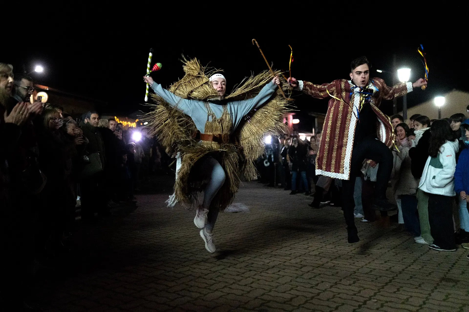 Y allá van. La mujer que encarna al Tafarrón es una chica de 21 años llamada Izaro García, con raíces en Pozuelo, pero residente en Mungia (Vizcaya). Como Madama, aparece Iván Velasco, de Zamora, pero arraigado igualmente en el pueblo. Ambos van intercambiados en este anochecer navideño. Es lo que manda la tradición. En el resto del ritual, incluidas las partes principales de este 26 de diciembre, Iván será el Tafarrón e Izaro, la Madama. Lo dice el libreto.