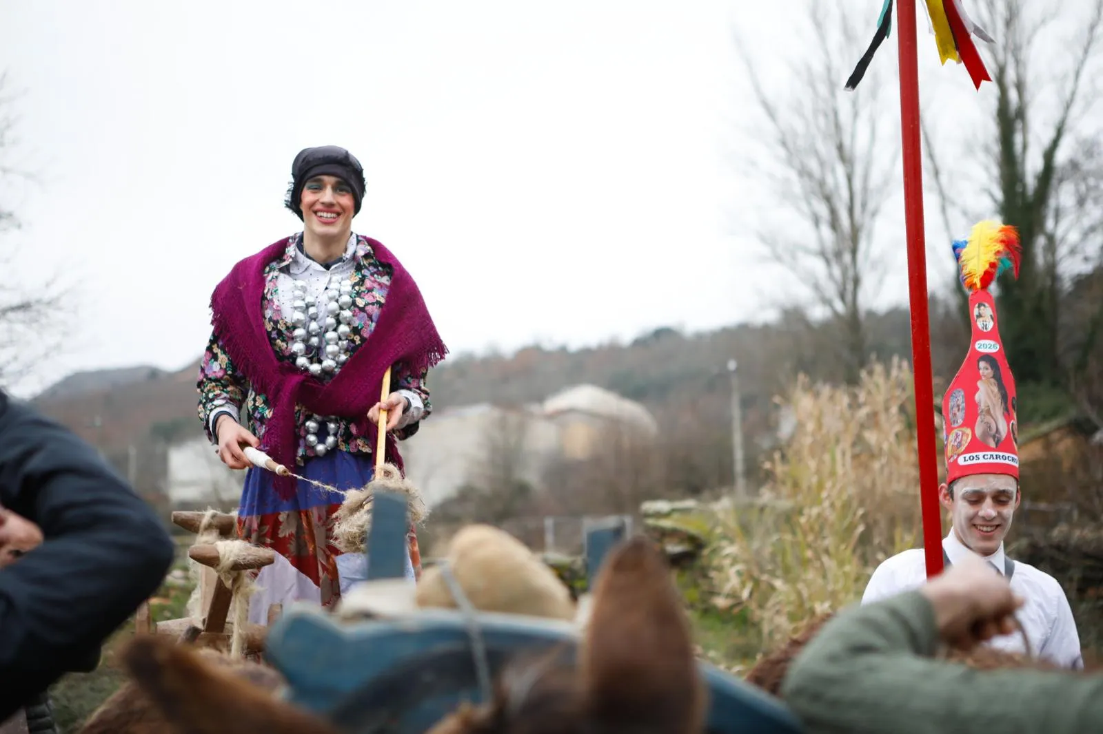 En Riofrío de Aliste la noche se ha hecho larga. Normal, es Nochevieja. Y el día de Año Nuevo se presenta intenso. La conversación de antes la llevan dos vecinas, sobre las 12 del mediodía, cerca de la puerta por la que unos minutos después, con el tradicional estruendo y humo, saldrán el Diablo Grande y el Chiquito, los dos personajes más representativos de la mascarada más concurrida del 1 de enero en Zamora, los Carochos. La noche ha sido larga, pero este momento nadie en el pueblo se lo quiere perder. Las caras de sueño son habituales entre la juventud, pero ahí están todos. Como debe ser.