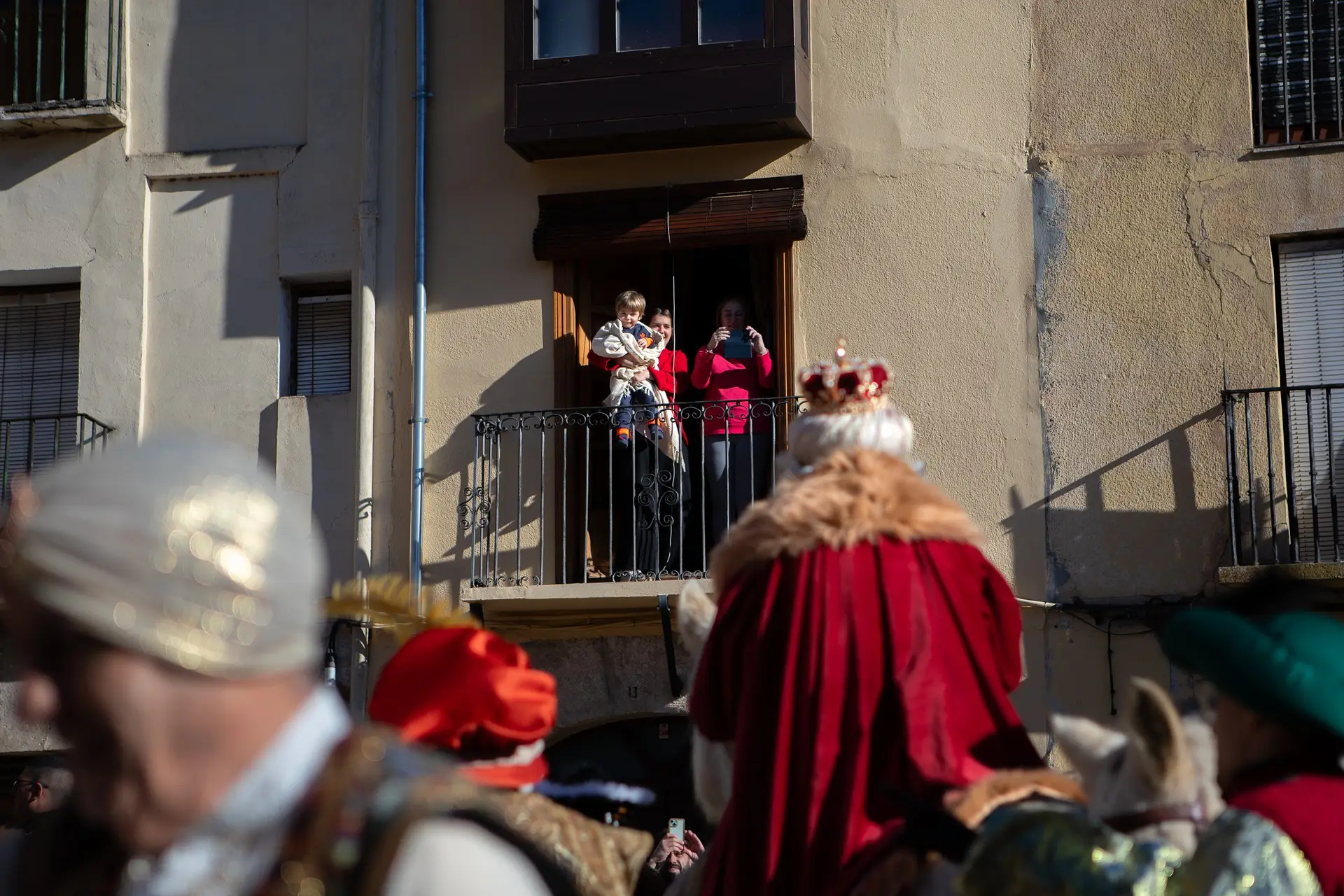 Sus Majestades madrugaron para plantarse a primera hora en Carrascal, pero ahora llegan entre bocinazos a la sede de la Fundación Rei Afonso Henriques (FRAH). De allí a la Plaza Mayor espera una nube de familias, de niños con gorros y pompón, de bebés a hombros y de vecinos asomados a los balcones. Se barruntaba día oscuro, pero en realidad no, así que las gentes se guían por el sol igual que Melchor, Gaspar y Baltasar siguieron la estrella.