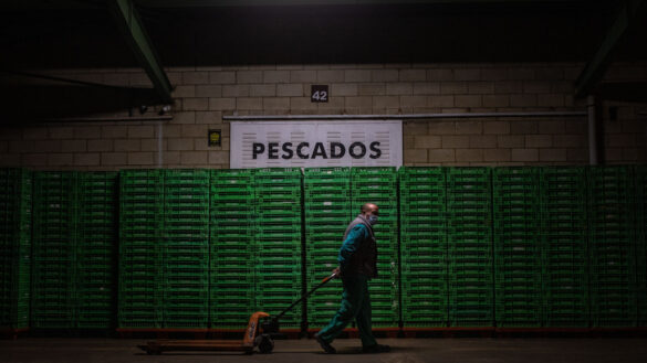 Un trabajador en el MercaZamora. Foto Emilio Fraile