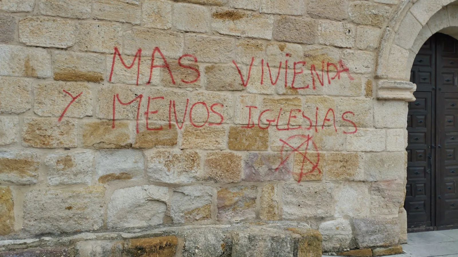 Los vándalos han vuelto a hacer de las suyas este fin de semana en Zamora. La iglesia del Espíritu Santo y algunas ubicaciones del barrio de San Isidoro han aparecido de nuevo con lemas escritos por un grupúsculo supuestamente anarquista. En la fachada de la iglesia del Espíritu Santo ha aparecido la pintada «Más vivienda, menos iglesia».