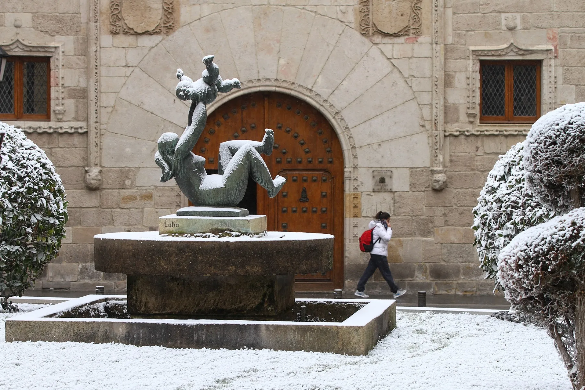 Escultura de Lobo, bajo la nieve. Foto Emilio Fraile