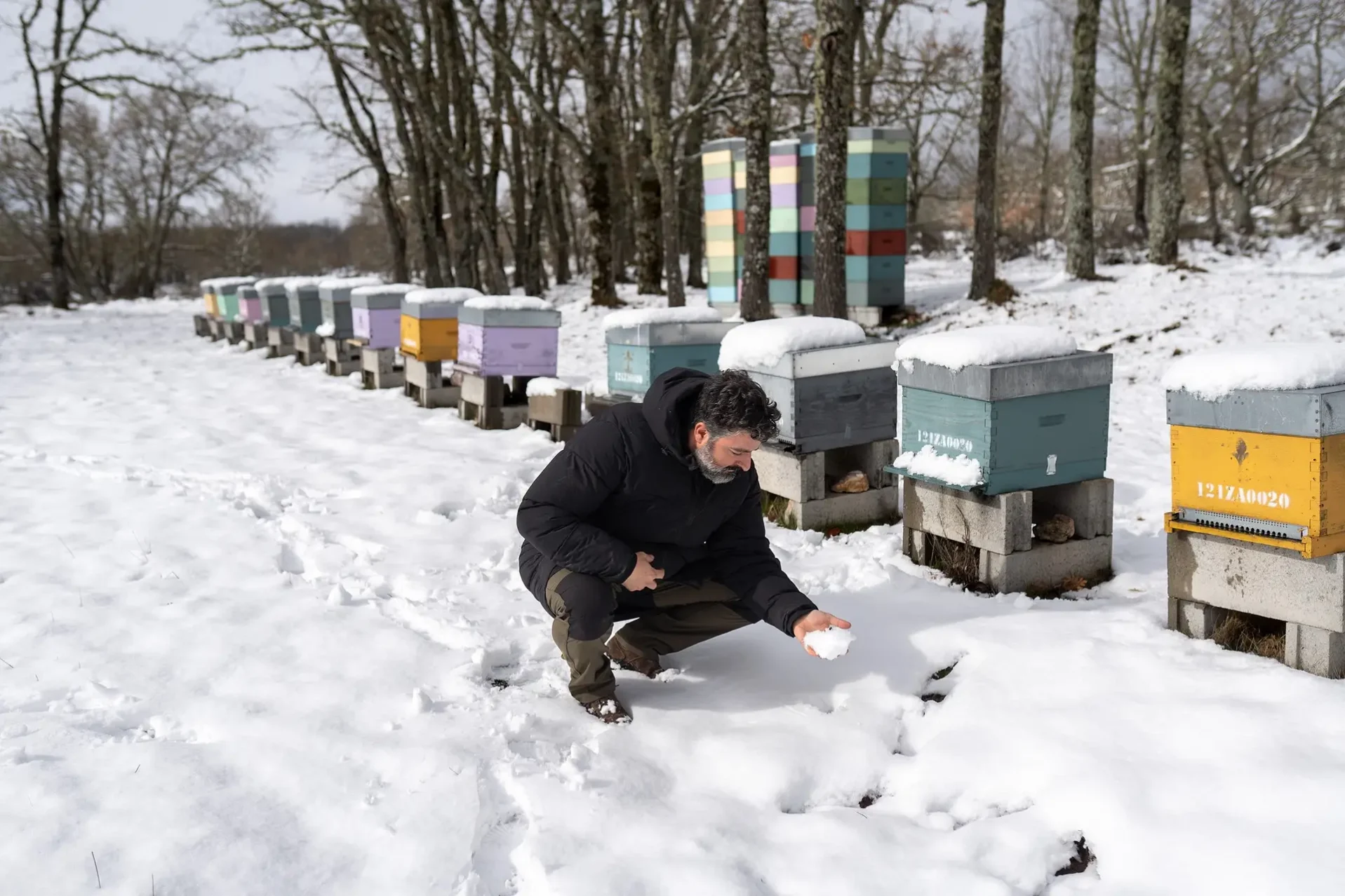 «A veces sucede que hay gente que pasa andando por las colmenas, ve que están llenas de nieve y te hace el favor de quitarla. Pero pedimos que no se haga eso. La propia naturaleza se autorregula», sostiene Alonso, que destaca que este es un error muy común también entre los propios apicultores que no tienen demasiada experiencia en la materia o que se ubican en zonas donde el invierno no suele dejar estas estampas.