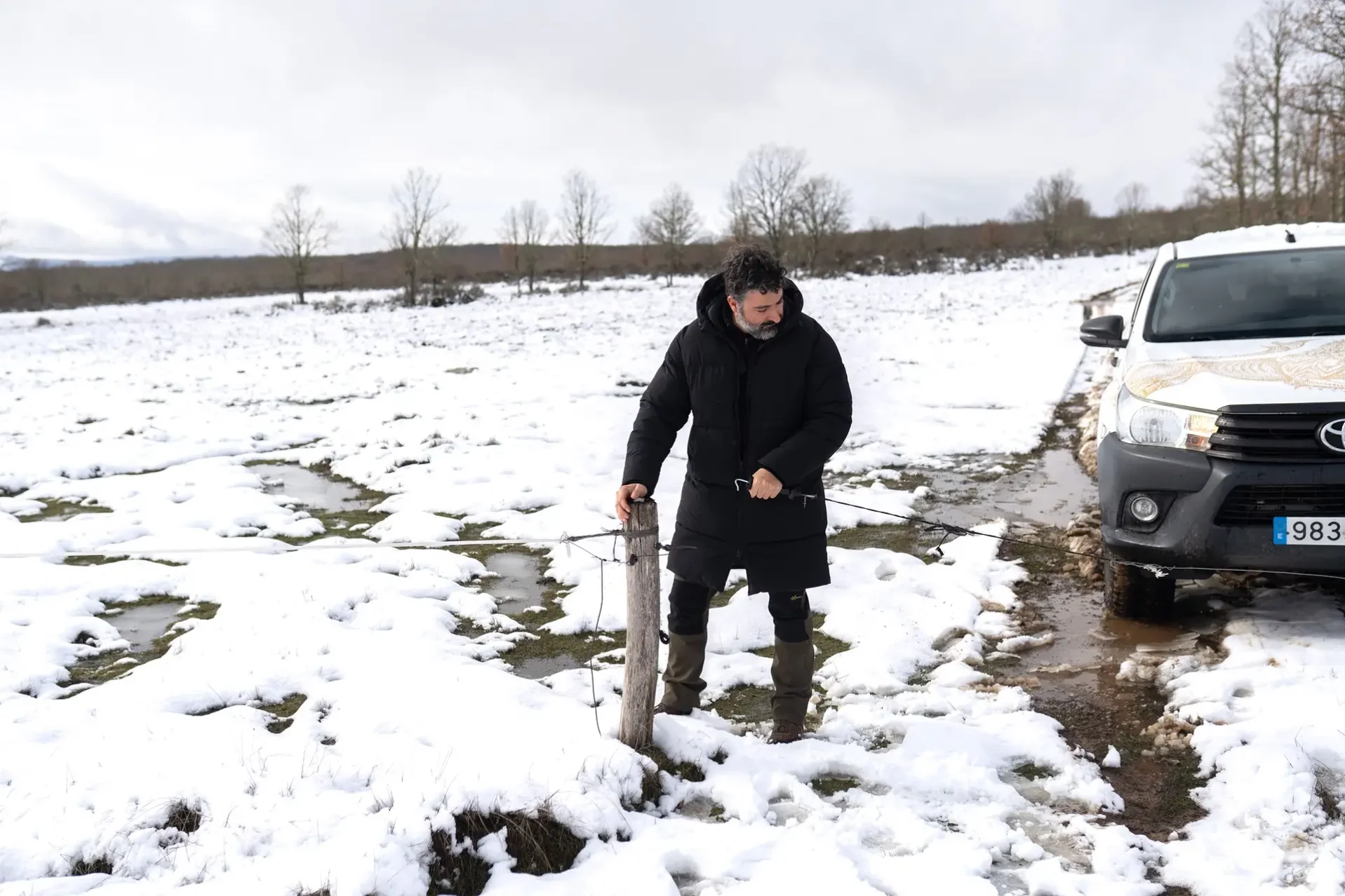 Antes de poner un pie en la zona, Alonso empieza a responder preguntas. Aquí, se trata de analizar qué sucede con las colmenas, y por ende con sus habitantes, cuando caen nevadas de esta índole: «Lo primero que quiero decir es que esto es algo bueno. Agradeceríamos que hubiera más. Son buenos augurios para la próxima campaña, se recargan los acuíferos y es vida para el campo», subraya el apicultor. Eso, por delante. Pero hay matices. O comportamientos que uno puede evitar si quiere salir indemne del temporal.