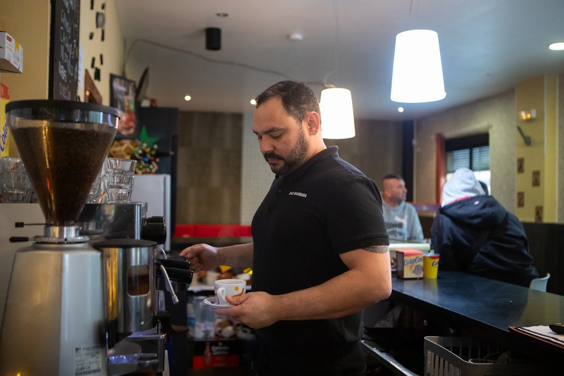 Camilo Cepeda prepara un café en su bar. Foto Paloma V. Escarpa