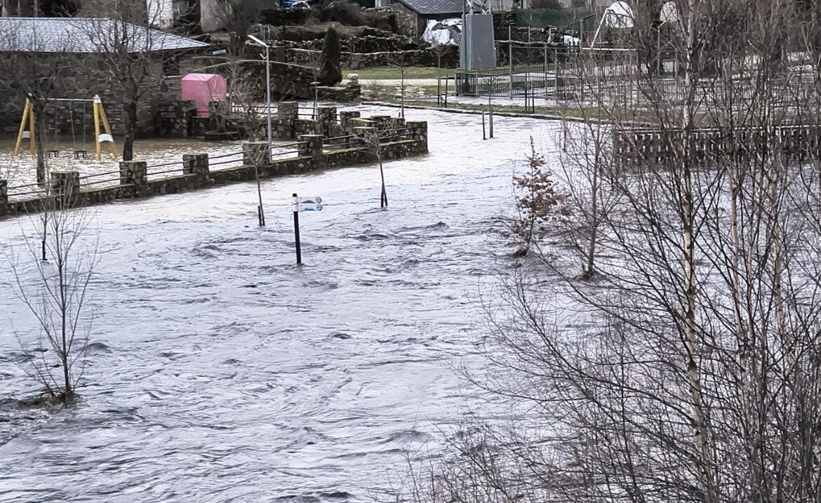 19.40. Preocupa a esta hora el estado del río Bibei en Porto. Se encuentra a 171 centímetros de nivel, en nivel rojo según la información suministrada por la Subdelegación del Gobierno de Zamora. Las imágenes difundidas por los vecinos por las redes sociales permiten comprobar que el agua ha llegado al casco urbano.