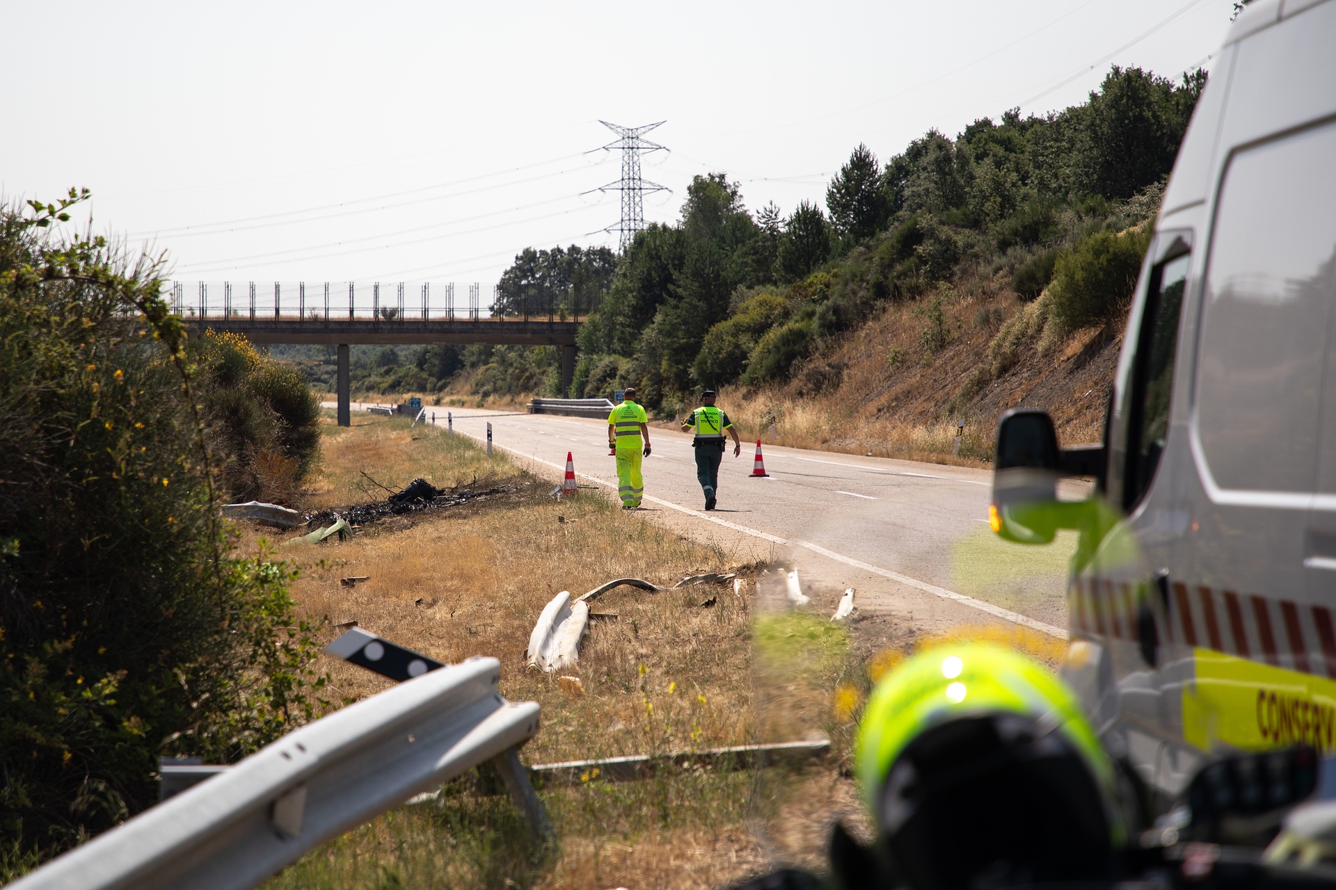 Los restos del accidente de tráfico en el que murieron los futbolistas Diogo Jota y su hermano André Silva. Foto Nico Rodríguez.