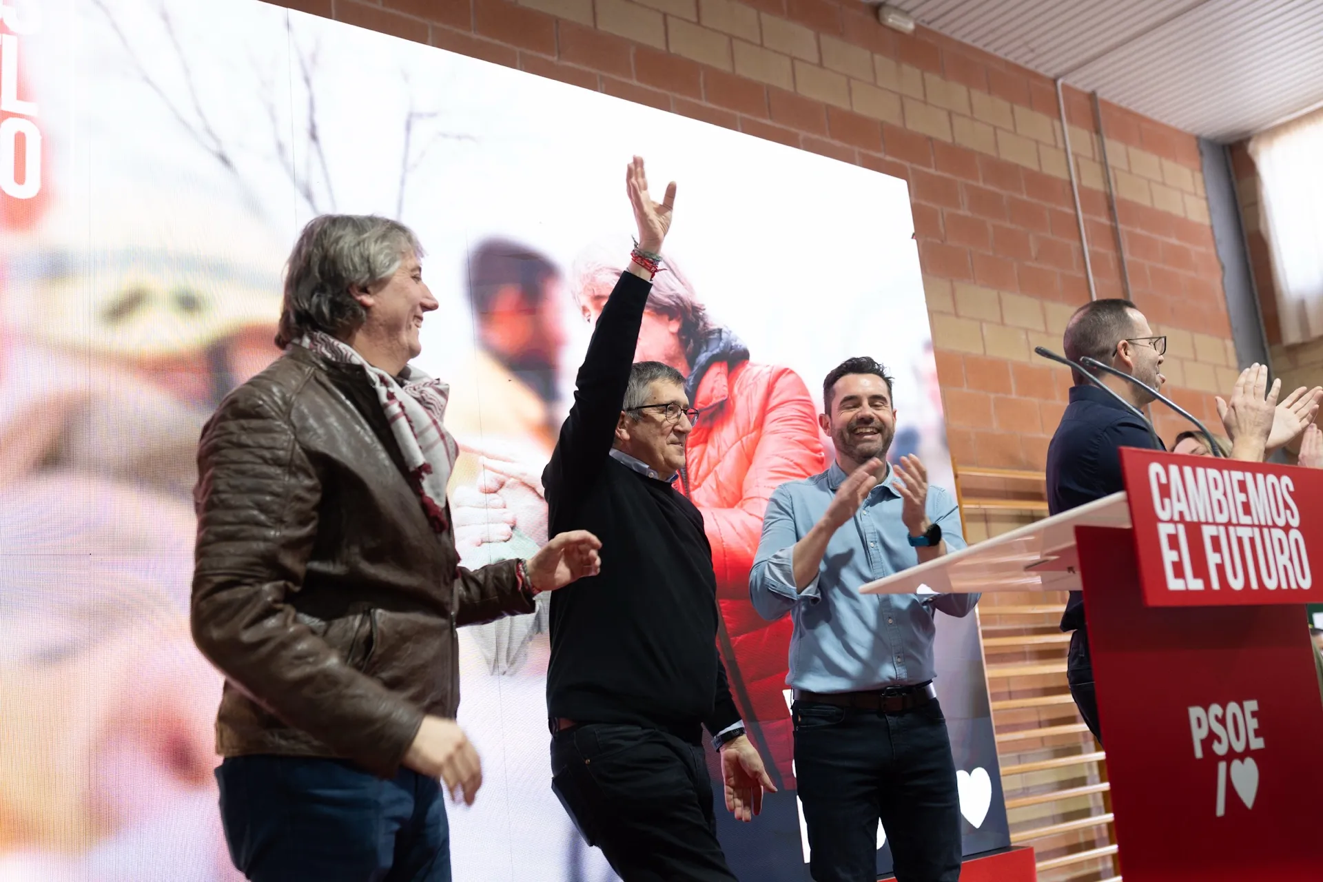 Patxi López saluda en el mitin del PSOE, acompañado de Carlos Martínez. Foto Emilio Fraile