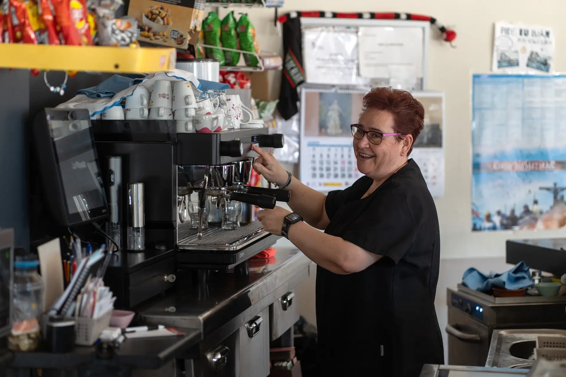 Una mujer pone un café en el bar de Manzanal del Barco. Foto Emilio Fraile.
