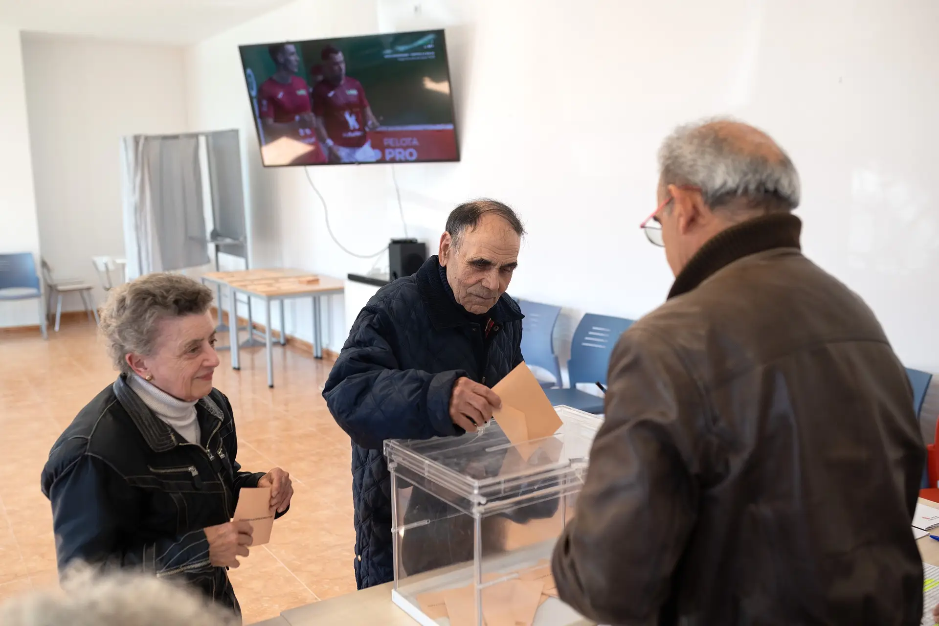 Dos personas votan en Fuentesecas. Foto Emilio Fraile.
