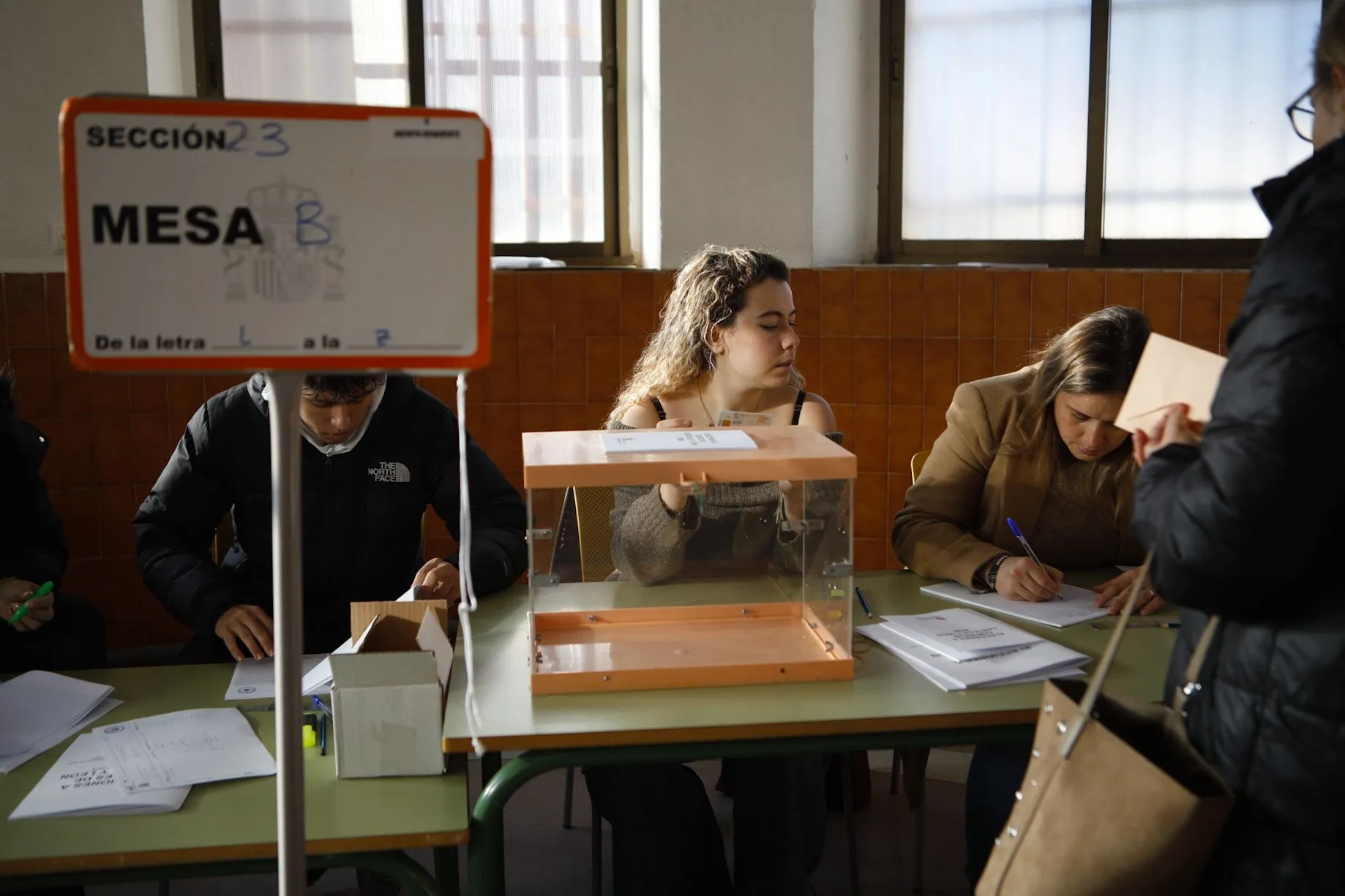 Elecciones a la Junta de Castilla y León en 2026. Mesa electoral en el colegio Jacinto Benavente. Foto Paloma V. Escarpa