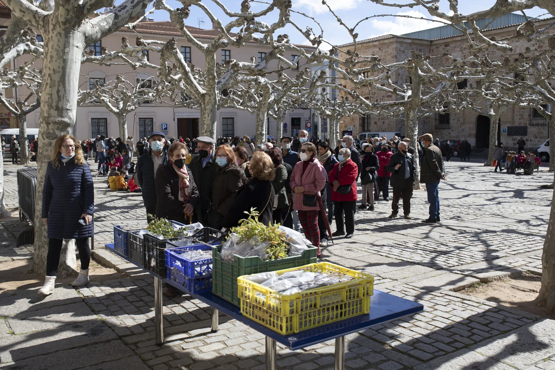 Varias personas hacen cola para recibir su planta, en una edición pasada del Día del Bosque. Foto Emilio Fraile