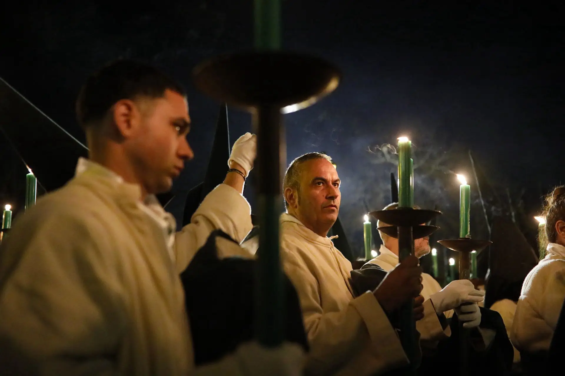 La Hermandad de las Siete Palabras ya saca en procesión, desde las doce de la noche, al Cristo de la Expiación por las calles del barrio de la Horta. La cofradía ha iniciado su recorrido a la medianoche iniciando la subida a la plaza de Viriato, donde, como cada año, se realiza el rezo de las Siete Palabras.