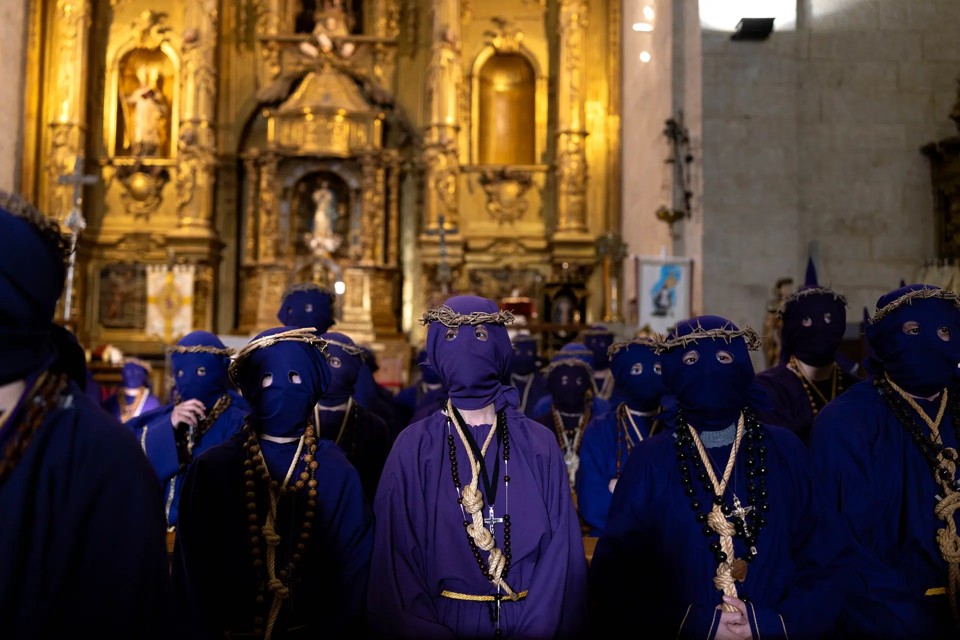 Los hermanos de las distintas cofradías de la cabecera de la comarca se reunieron en la iglesia de San Juan Bautista para seguir los rituales clásicos del Jueves Santo: de la entrada al templo a la misa pasando por el lavado de pies. Ecce Homo, Jesús Nazareno, Cristo de la Agonía y Virgen de los Dolores se unieron en una misma tradición.