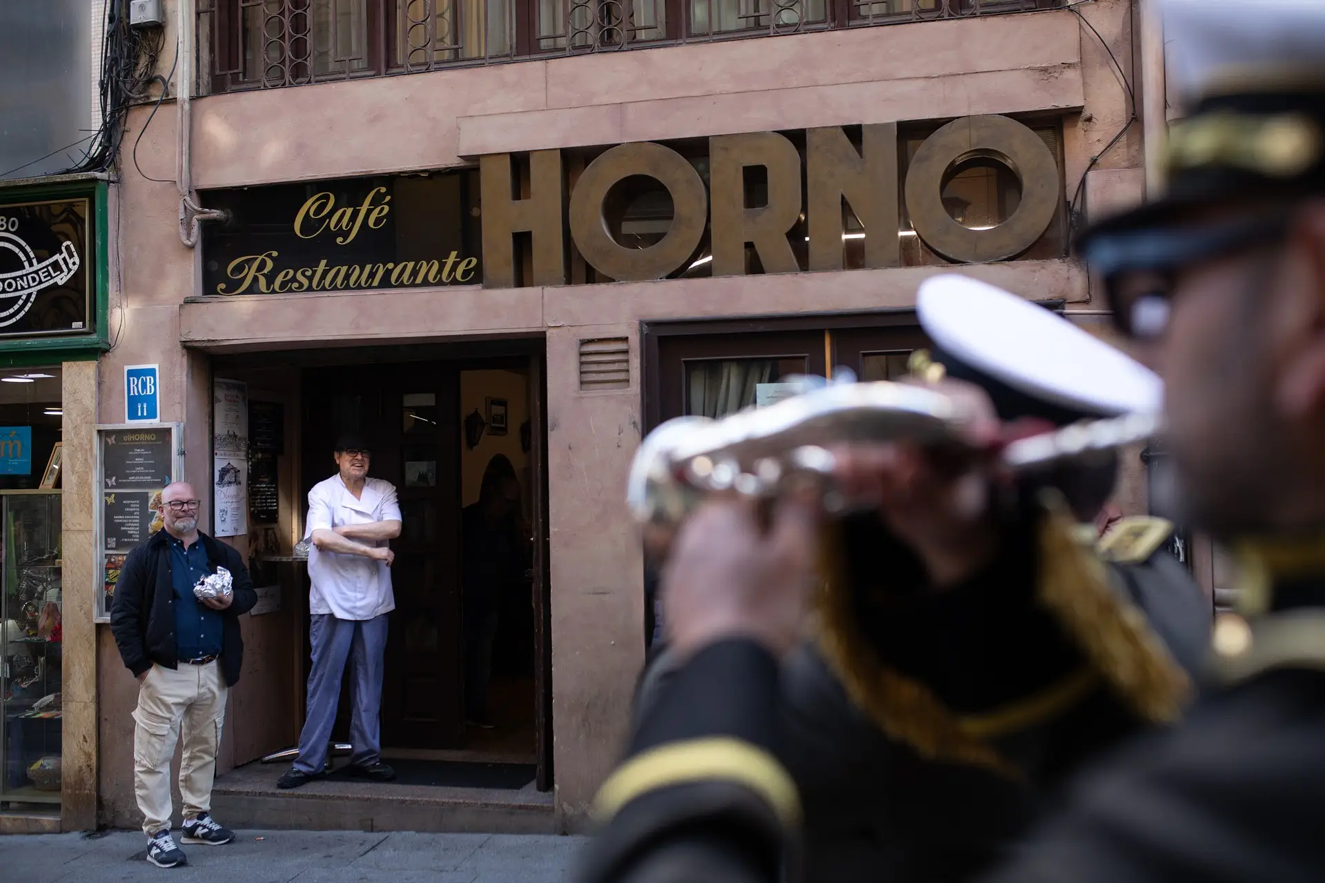 Y la parada de David y sus compañeros para tocar está relacionada con un final y un principio. En octubre, Antonio se jubila; deja la cocina después de 50 años de oficio. «Esto quema mucho», admite luego el protagonista, que ha pasado los últimos 30 años de trabajo en el mismo lugar. Por aquí ha visto pasar otras tantas Semanas Santas. «Joder, son agotadoras. Pero hay que vivirlo, hay que estar ahí», recalca el cocinero, que cumplirá 65 años en octubre y lo dejará.
