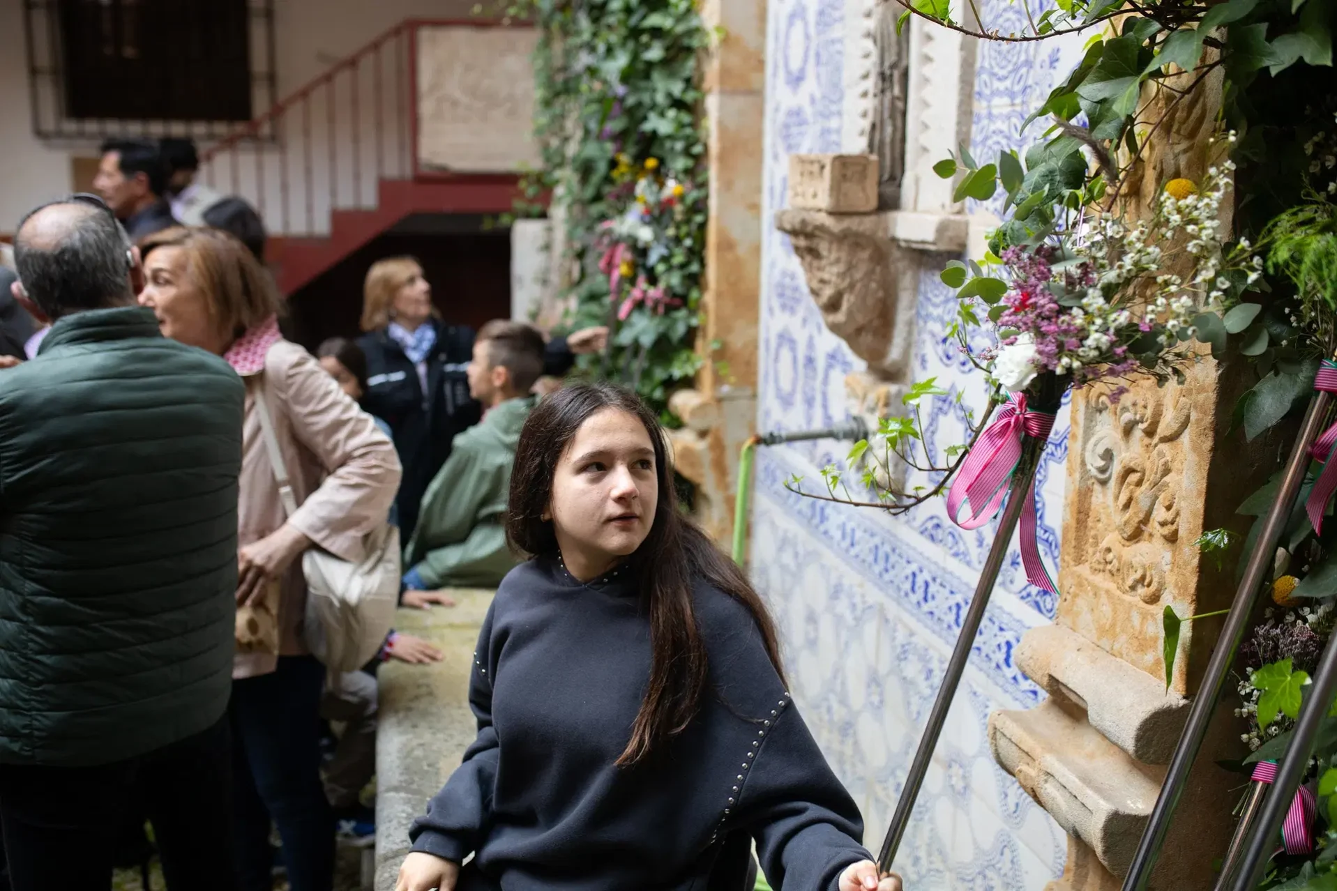 Detrás, una niña le pregunta a su madre: «¿Esta es la casa del señor que invita a desayunar?». La mujer le está respondiendo que sí, pero pronto agarra a su hija de la mano y se la lleva: «Nos van a arrollar». Efectivamente, la procesión ha llegado al descanso y un torrente de seres humanos emboca ya la puerta de Pedrero para entrar al ágape de toda la vida. La familia y los amigos de la casa reparten churros y aguardiente. Como manda la costumbre.