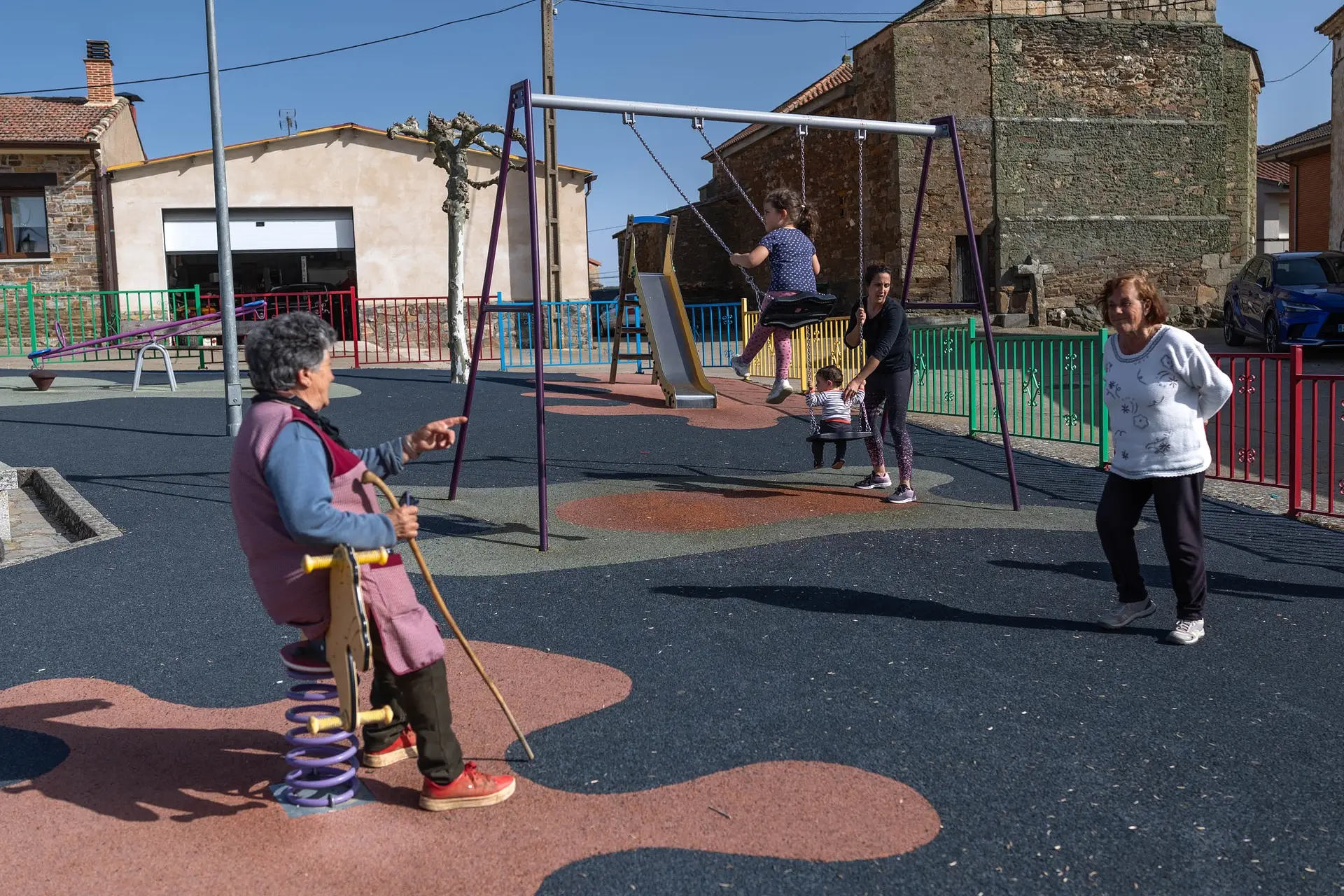 La mujer que empuja un columpio y vigila el otro echa las cuentas y constata que son cinco de su familia: Jimena y Héctor y tres de sus cuñados. Luego, los dos de El Molino, los de la casa rural, y los tres que han venido con la pareja que abrió el bar hace algo más de un año. Esos diez viven de continuo, otros cuatro más están censados y un puñado extra viene de manera recurrente los fines de semana. Por no citar los de la Semana Santa y el verano, claro.