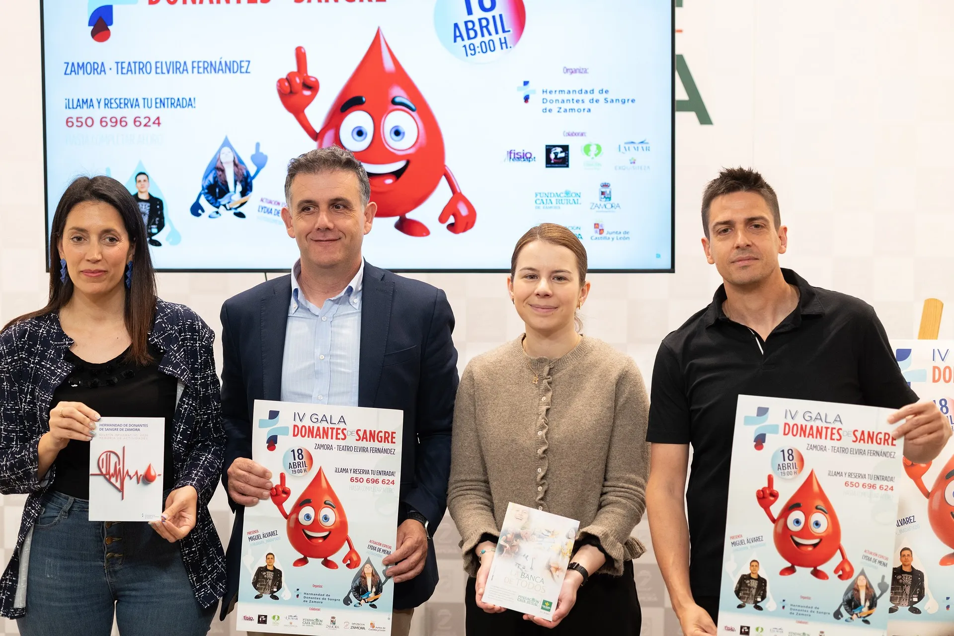 Los encargados de presentar esta IV Gran Gala del Donante de Sangre han sido el vicepresidente segundo de la Diputación de Zamora y diputado de Política Social y Familia, Ramiro Silva Monterrubio; la presidenta de la Hermandad de Donantes de Sangre en Zamora, Isabel Cabrera Huertas; la representante de la Fundación Caja Rural de Zamora Laura Huertos; y Miguel Álvarez, músico y presentador del evento.