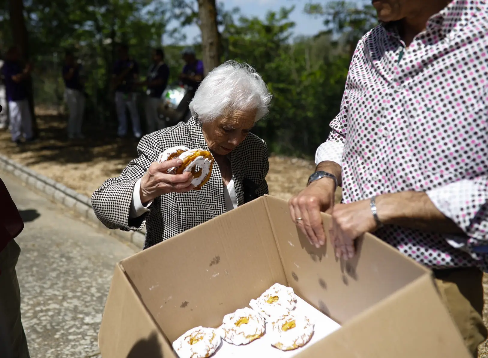 Sabedores de esa tradición, los miembros de la cofradía, encabezados por Miguel Fernández, aspiran a que ese viaje desde los pueblos de la contorna hasta la ermita se recupere para la romería de 2027. «Vamos a ver si lo conseguimos», desliza el vecino de Villaescusa mientras sigue repartiendo las rosquillas. Eso del tentempié, en principio, se mantendrá intacto, aunque si viene tanta visita quizá Emilio tenga que echar más de tres tardes.