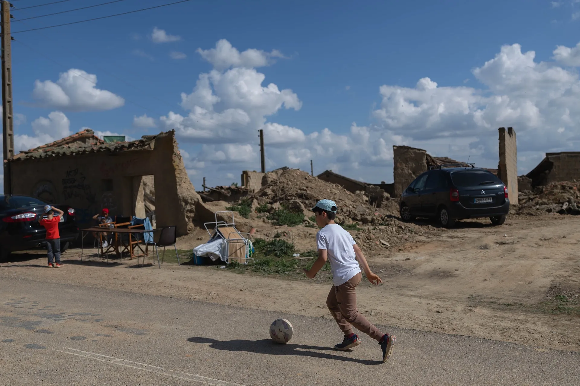 «Menos en la iglesia, que no podemos, trabajamos donde nos dejen», apunta por su parte Jesús Salvador, que es el coordinador del grupo de trabajo que durante los últimos meses se afana en recuperar parte del despoblado. Lo hace con un grupo de ocho personas que no sabían «prácticamente nada de albañilería» cuando comenzó el proyecto y de un capataz que, este sí, sabe por donde se anda y es capaz de guiar a los neófitos en las siempre complicadas tareas de la construcción. Se ha acondicionado el pilón, que durante estos días se ha llenado de agua para que estuviera en buen estado, y se trabaja en poner a punto las dos calles citadas antes, que hay que hacer «prácticamente de nuevo» porque, después de tantos años, no queda prácticamente nada sobre lo que trabajar. En mente está despejar la zona de edificaciones de tierra en ruina, pero para eso todavía queda mucho que hablar. «El objetivo fundamental es que la plaza del pueblo sea un sitio digno», reivindica Pascual.