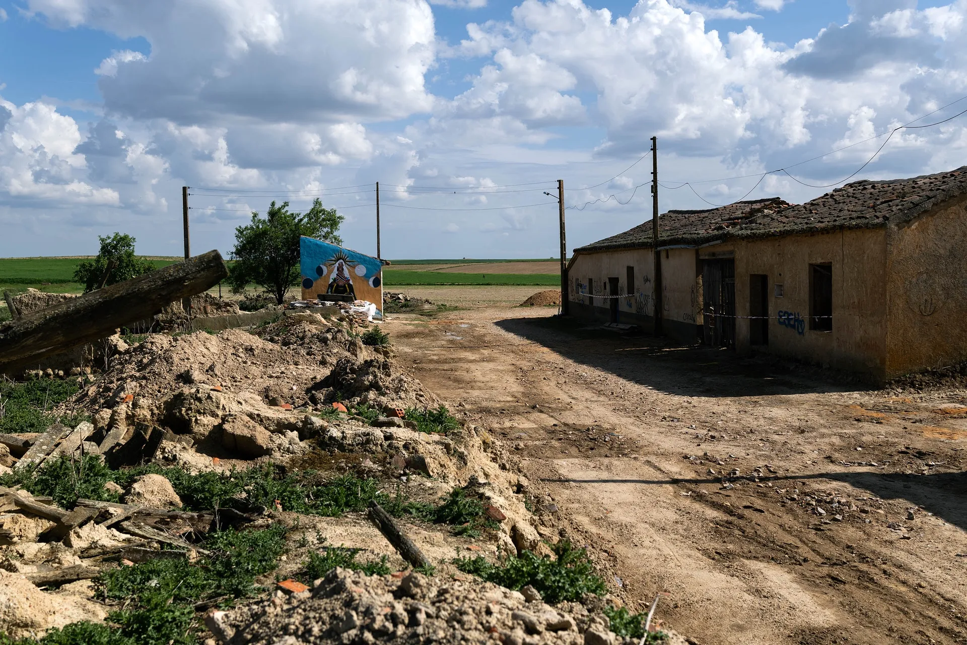 Algo se mueve en Otero de Sariegos. Como cada día de San Marcos, hijos del pueblo deshabitado desde el año 2003 y amigos de los pueblos de Villafáfila y Villarín de Campos acudieron a la tradicional romería. Este año, con más razón. En la entrada del pueblo, un pilón levantado por ocho personas de los planes de empleo de la Junta, empujadas por la determinación de la Asociación Amigos de Otero, da la bienvenida a los romeros. Habrá a quien no le parezca mucho, pero lo es. Este pilón es la primera construcción que se hace en Otero de Sariegos en varias décadas. Después de años de calles que desaparecen comidas por la tierra, casas de tierra que se hunden e iglesias que se tambalean, el pilón demuestra que Otero, aunque despoblado, no está muerto.